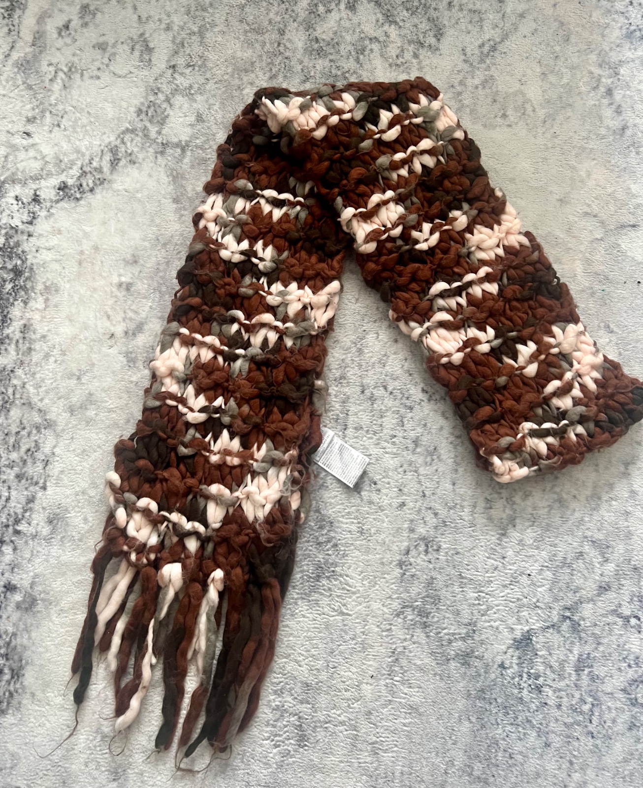 Veľmi pekný šál , teplý v top stave. Celková dĺžka 226 cm bez strapcov.