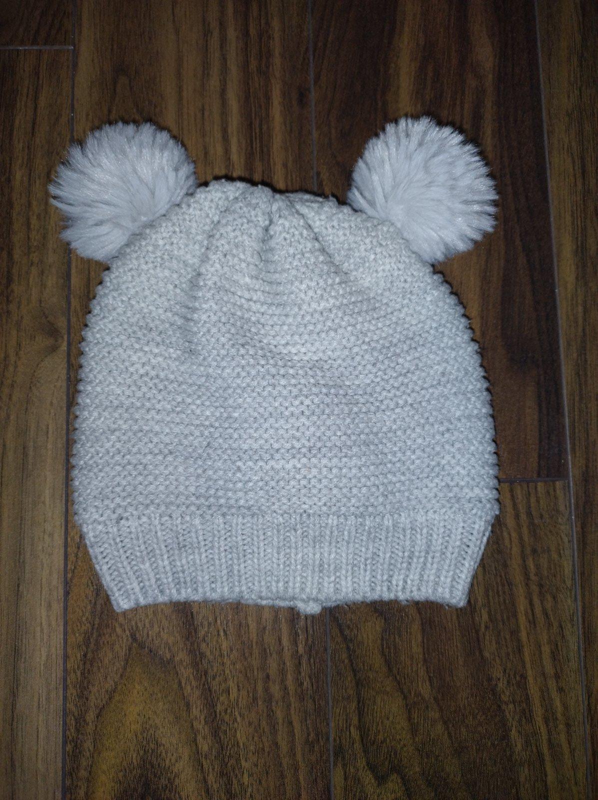 Hrubá čiapka s brmbolcami. Podšitá flísovou vrstvou. Veľkosť udávaná 86-98, ale dcérka ju nosila do veľkosti 92. Nosená, bez poškodení.