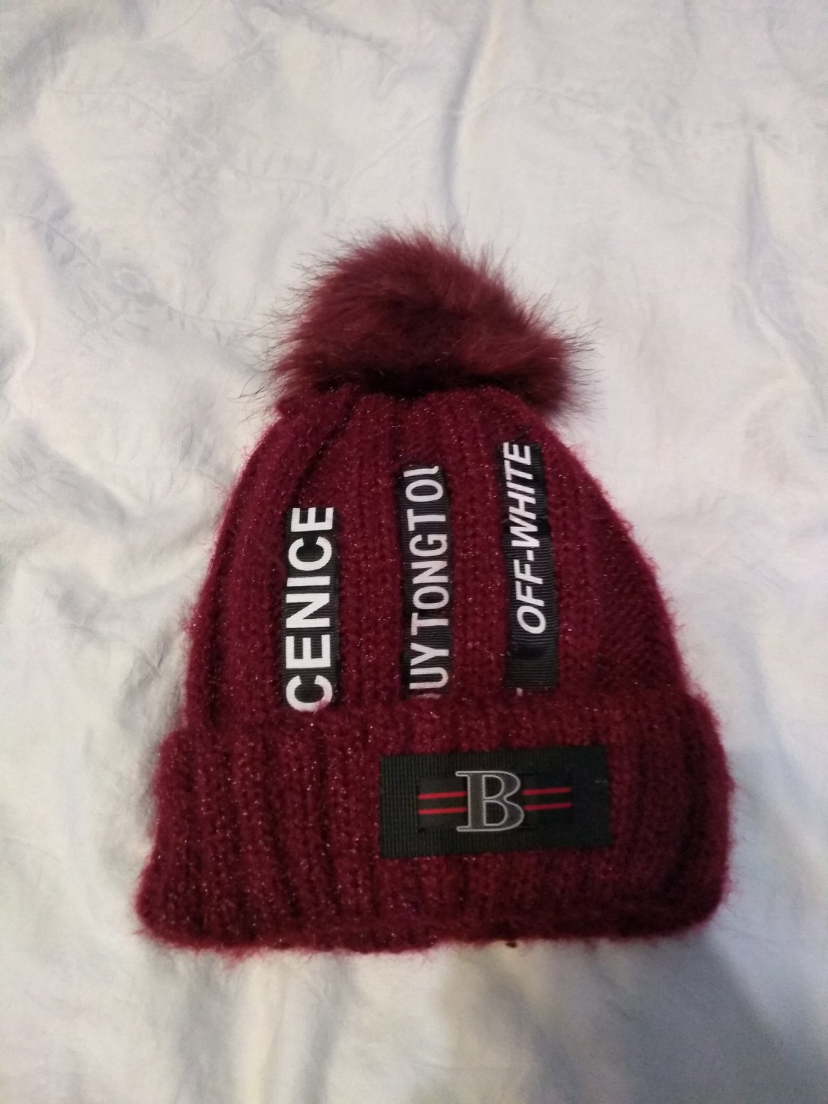 Nenosena krasna bordova ciapka s nadhernym kozusinovym brmbolcom (umela kozusina) Zateplena vhodna na zimu Velmi elegantna, odporucam Rozmer 56-62 Farba je bordova, tmavo-vinovo cervena, nedalo sa ...