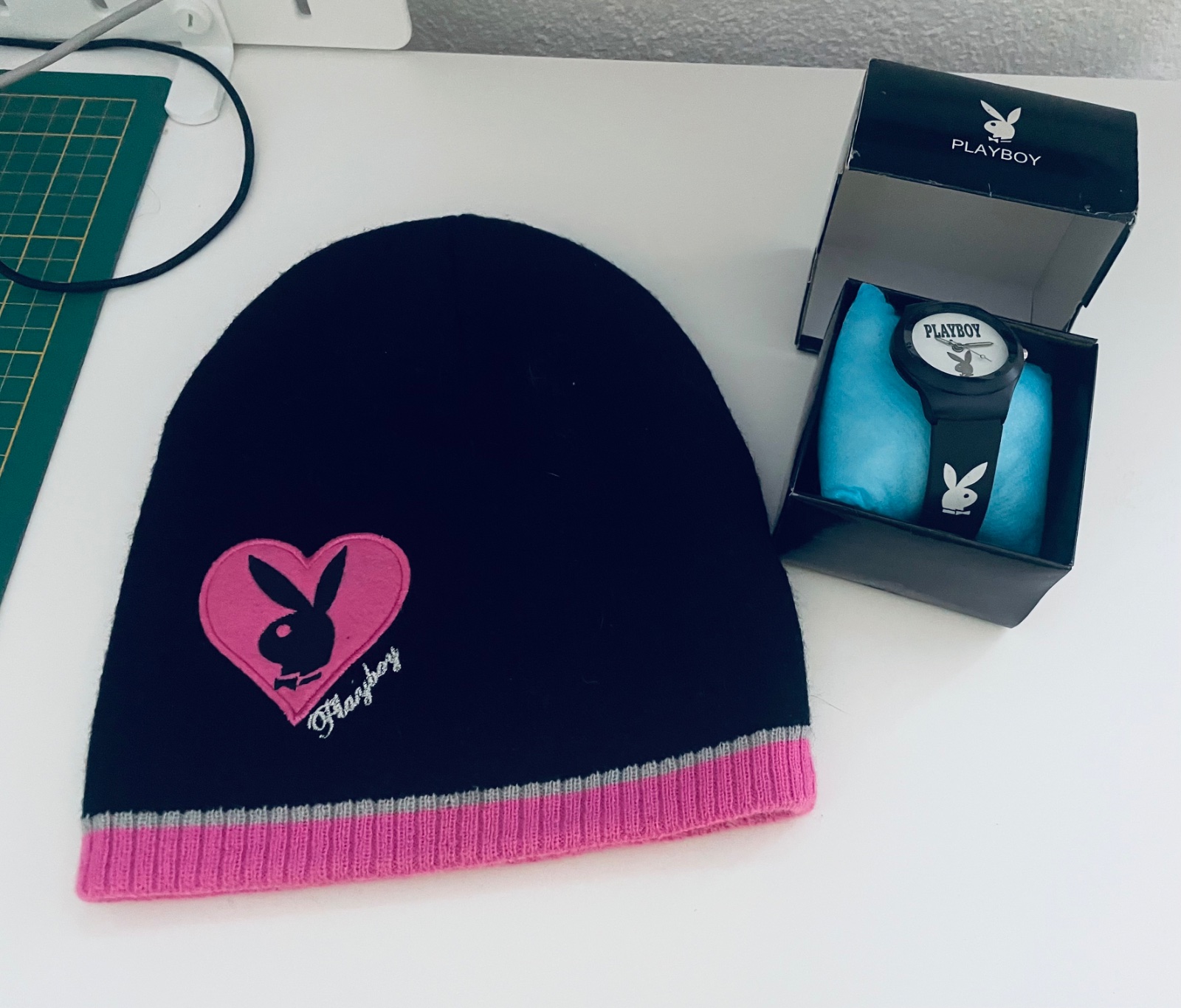 Playboy čiapka a hodinky