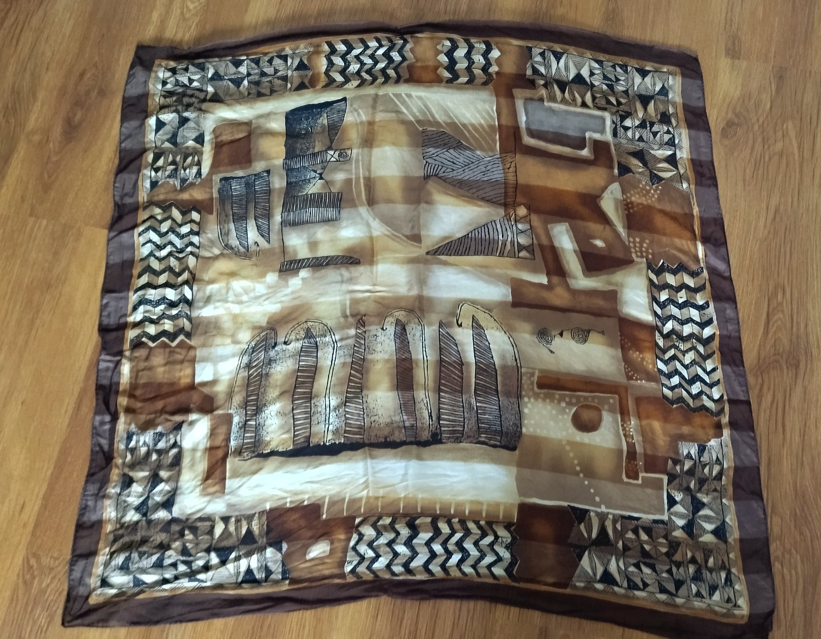 Príjemná mäkká veľká šatka, rozmery 140x140 cm. Zopár zatiahnutých nitiek.