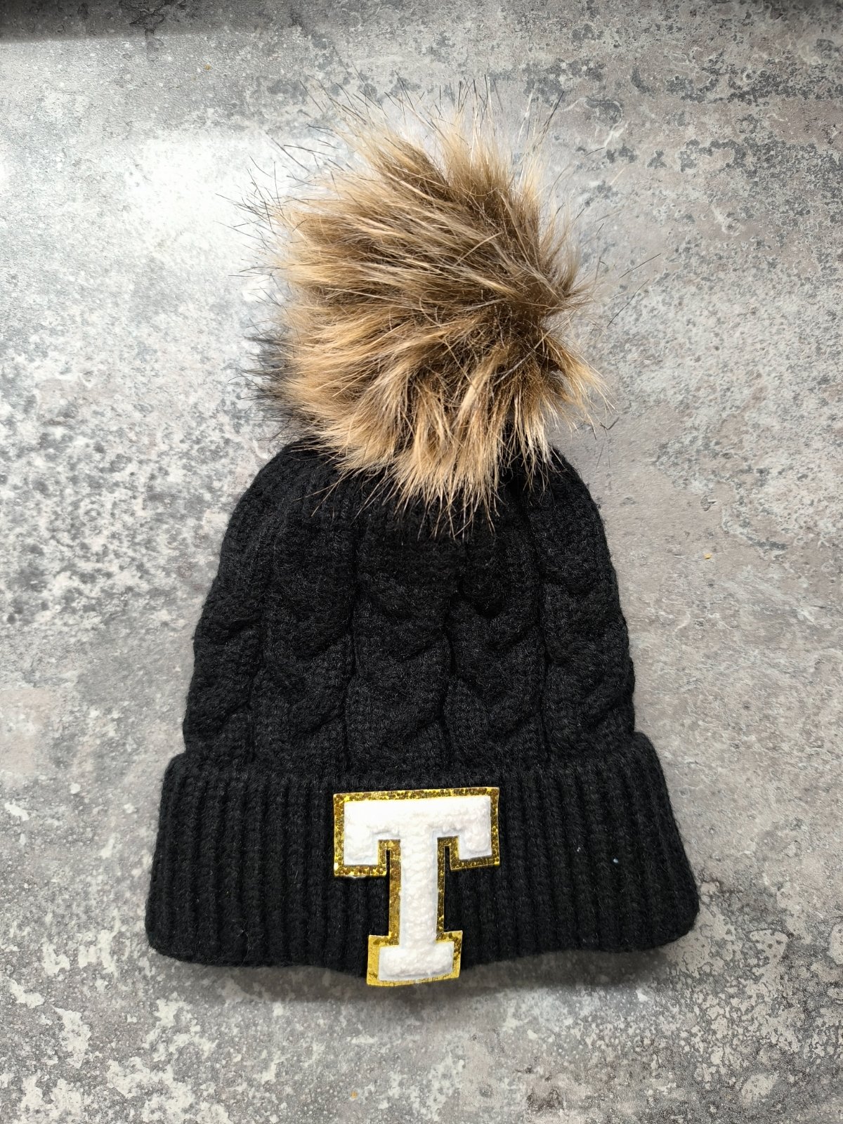 Zimná čiapka s písmenom T.