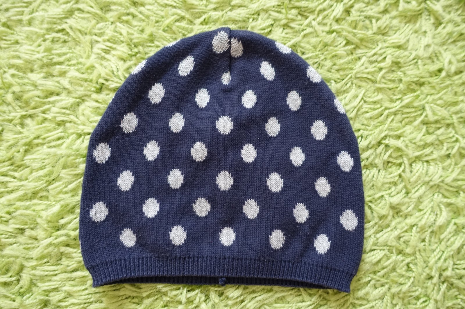 Predám krásnu tenšiu jednovrstvovú stredne hrubú čiapočku so striebornými trblietajúcimi sa guličkami vo veľkosti 110/128, ale je veľmi prispôsobivá, natiahne sa, oblečiem ju aj ja a pekne sedí a nezaťahuje. Bola nosená na striedačku aj s inými čiapočkami, ale je v peknom nosenom stave. Dĺžka predného dielu je 19 cm a zadný diel je ešte o 1 cm predĺžený. Šírka čiapočky v kľude je 19,5 cm, natiahne sa aj na 30 cm. (G)