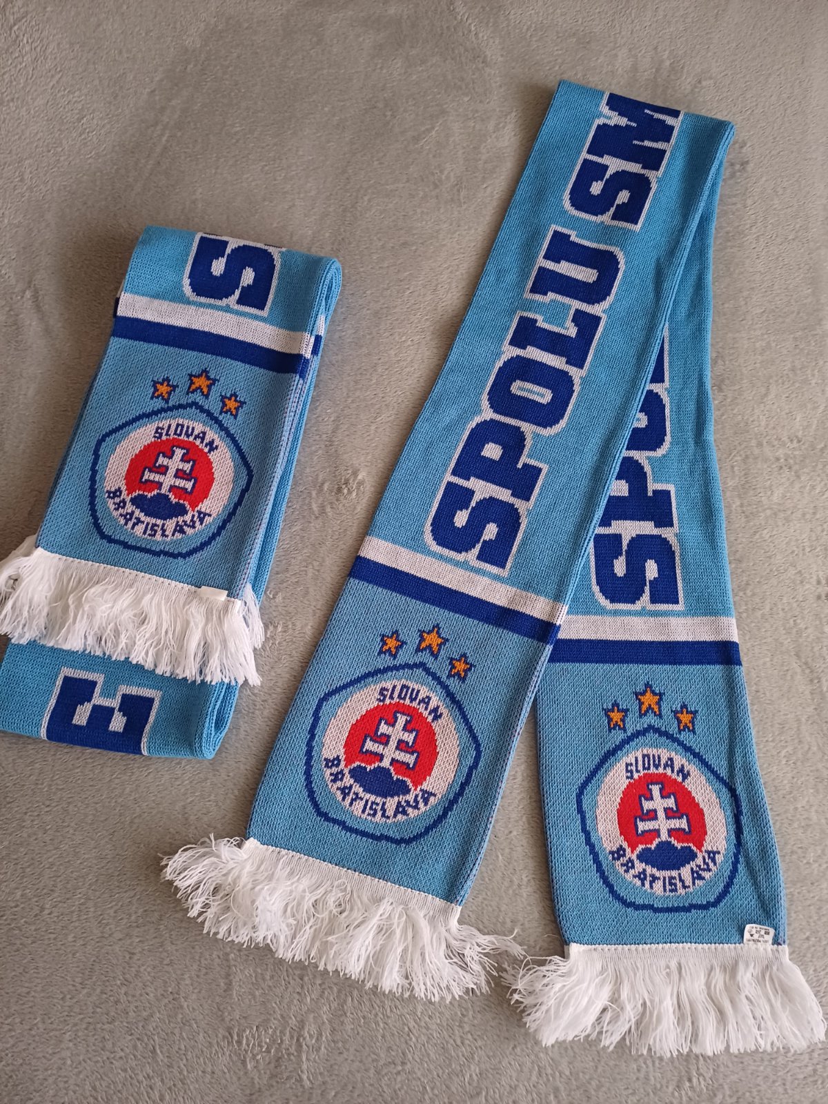 Nepoužívaný pletený šál Slovan. V prípade záujmu mám 2 kusy.