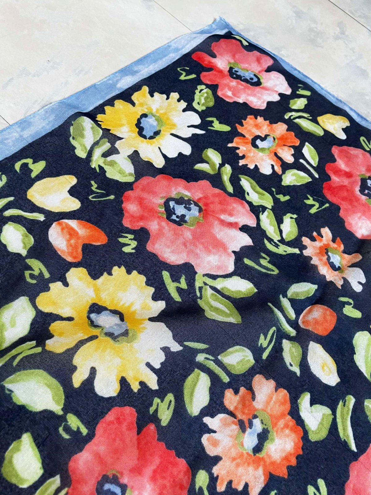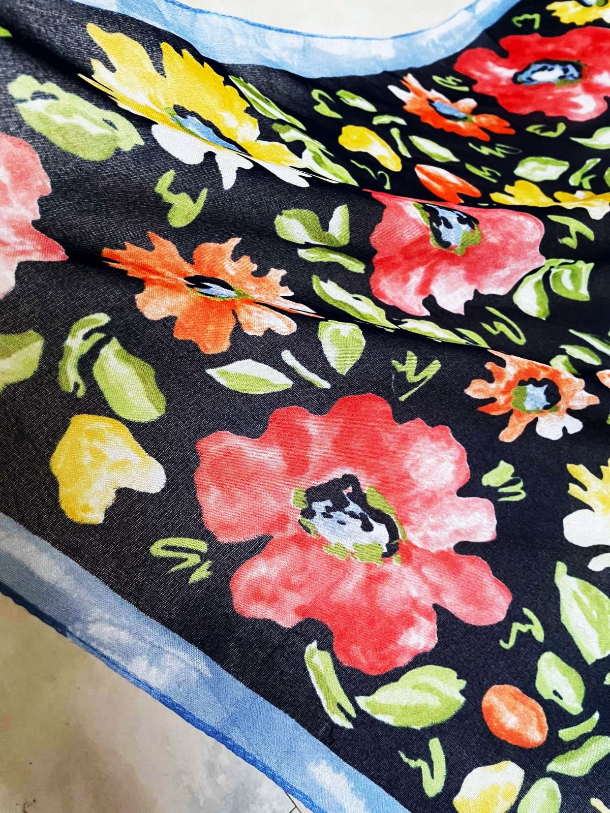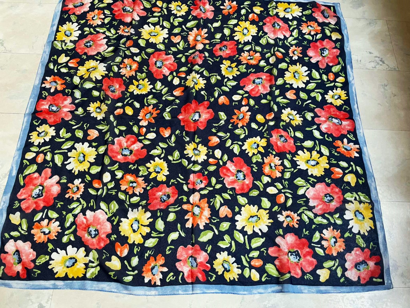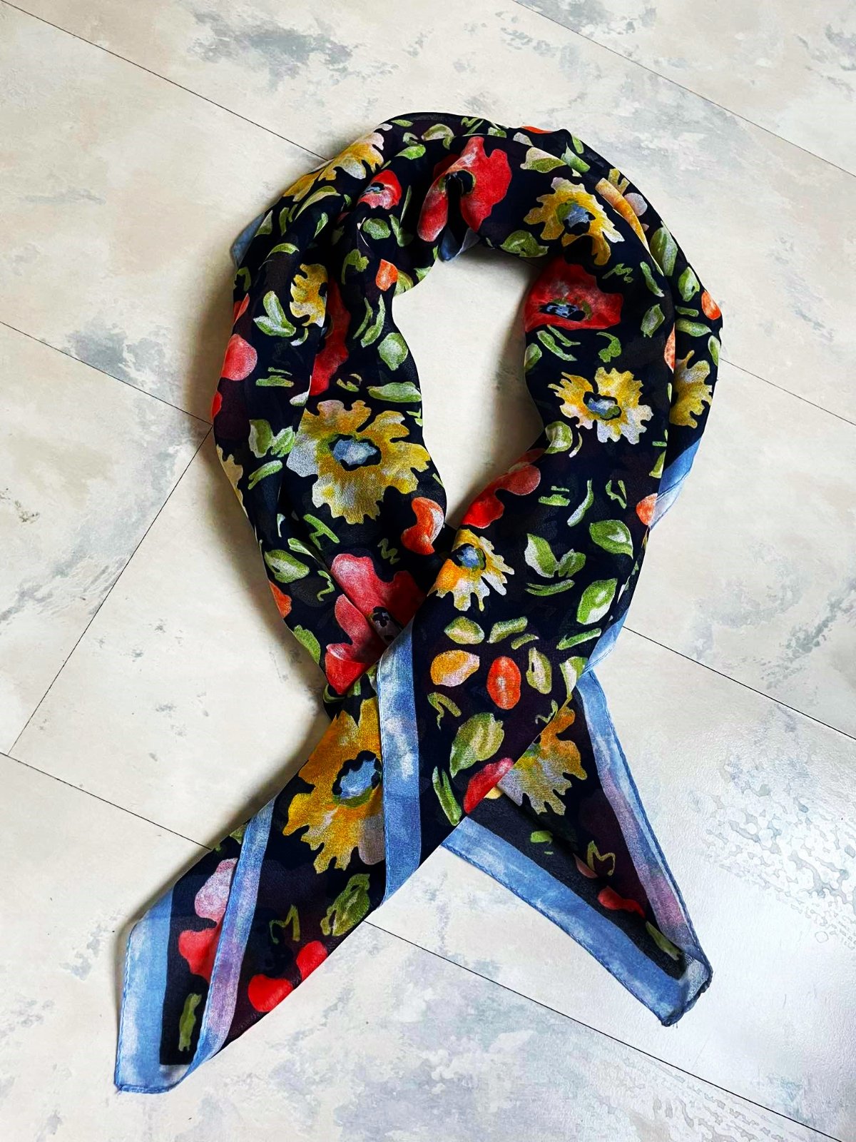 nádherná luxusná tenučká kvalitná šatka,rozmer : 85 x 85 cm,ľahúčka ako pavučina,materiál podobný hodvábu s prímesou jemného batistu,nádherné farby, top doplnok,top stav - úplne ako nová, super aj ako darček