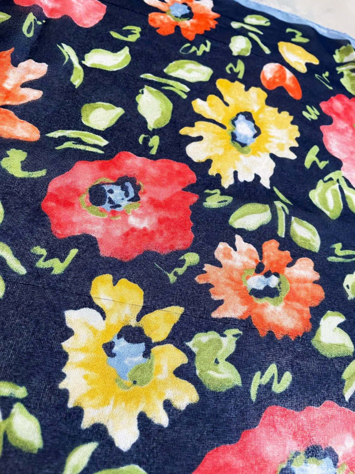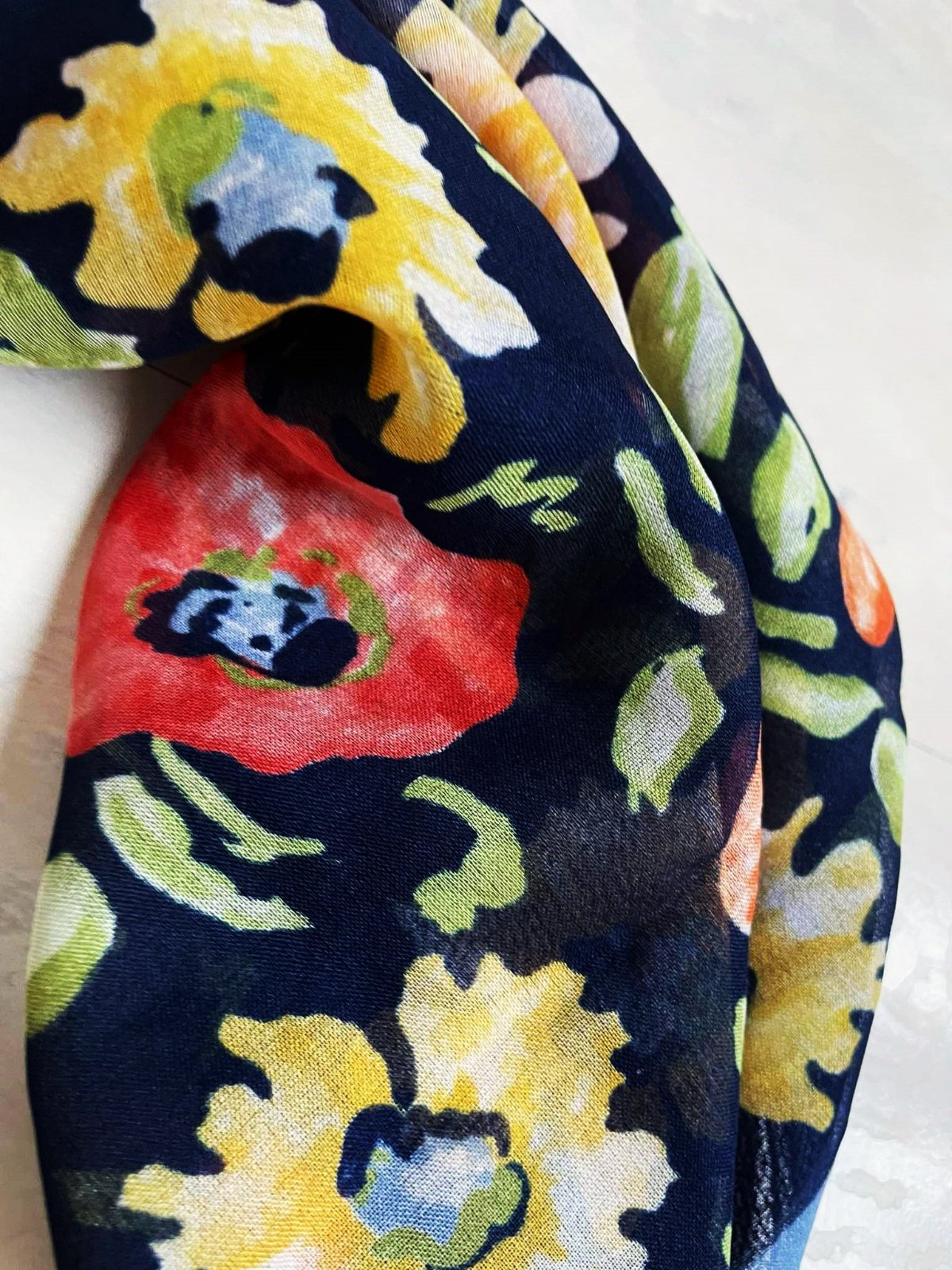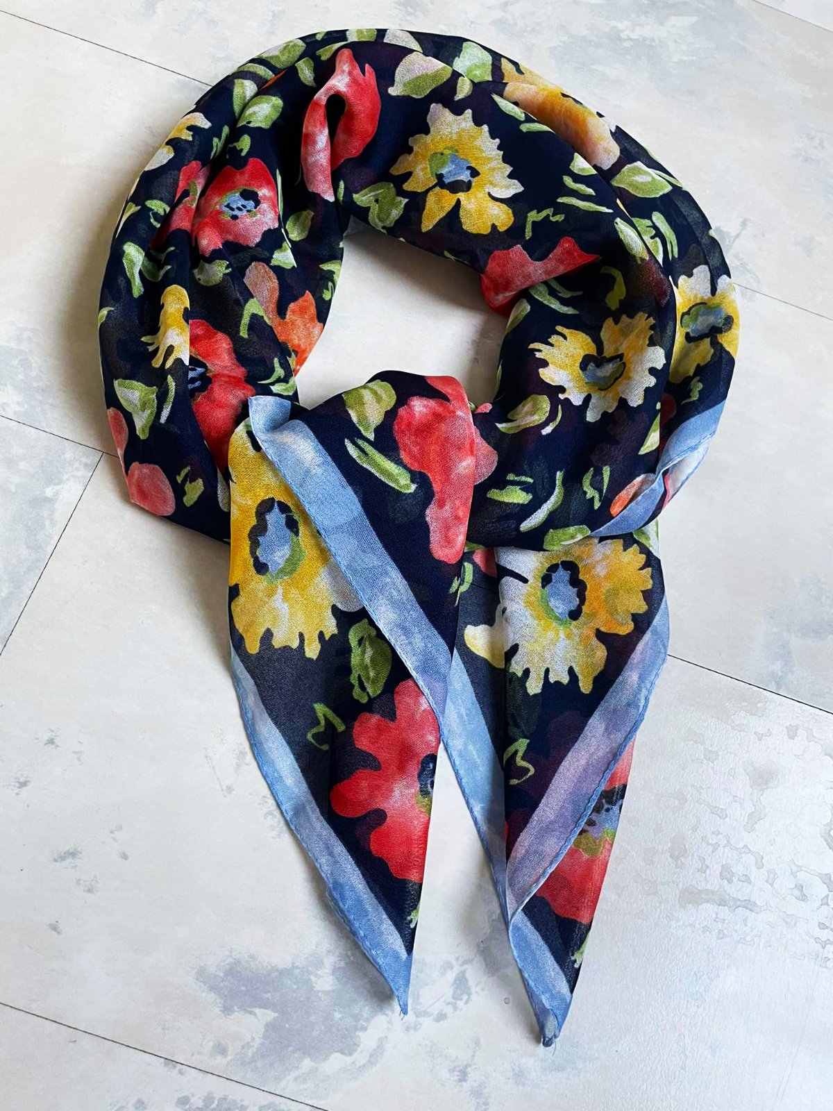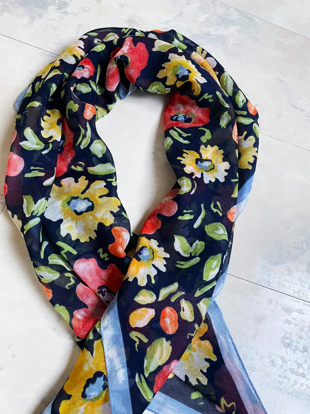 nádherná luxusná tenučká kvalitná šatka,rozmer : 85 x 85 cm,ľahúčka ako pavučina,materiál podobný hodvábu s prímesou jemného batistu,nádherné farby, top doplnok,top stav - úplne ako nová, super aj ako darček