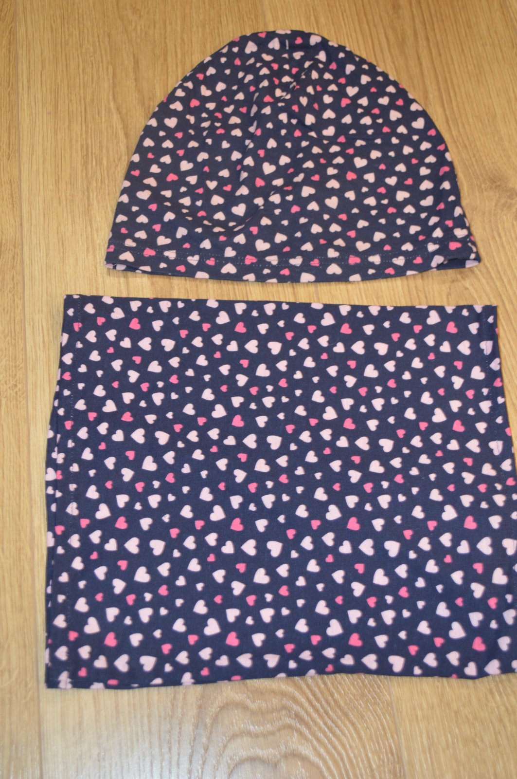 Tenký set čiapka + nákrčník, veľkosť 110/116 + rozmery na fotkách, bez poškodenia