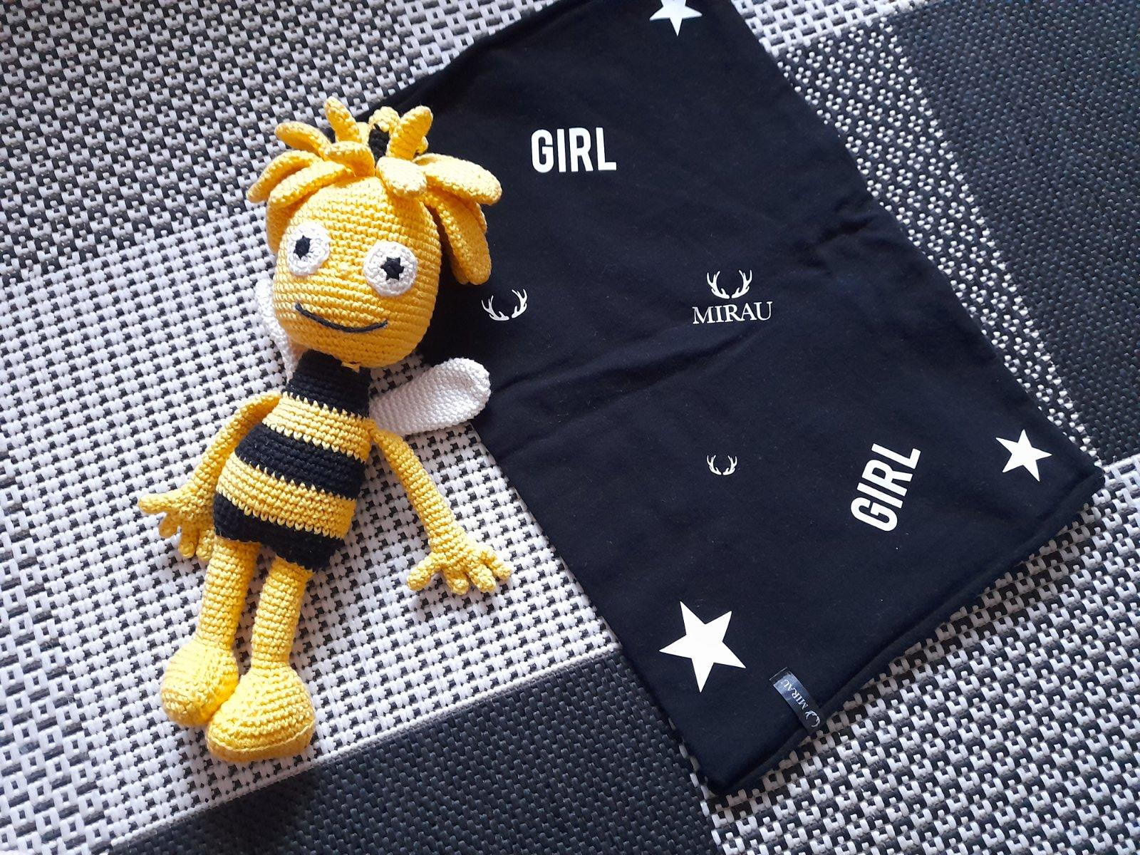 Farba smotanova. Pekny noseny stav, z jednej strany pleteny, z druhej flisovy, velkostne sadne tak na 3-5 rokov (stitok odstrihnuty).