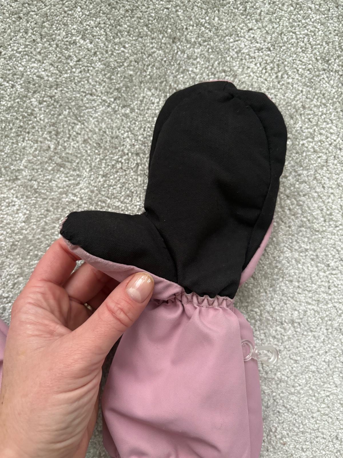 Rukavice prstačky s motívom Frosen. Veľmi dobrý nosený stav. Sivá a ružová časť sa dajú nosiť samostatne. Veľ. písaná výrobcom 110/128. V prípade záujmu prosím čítajte "Podmienky predaja"- NEMERI...