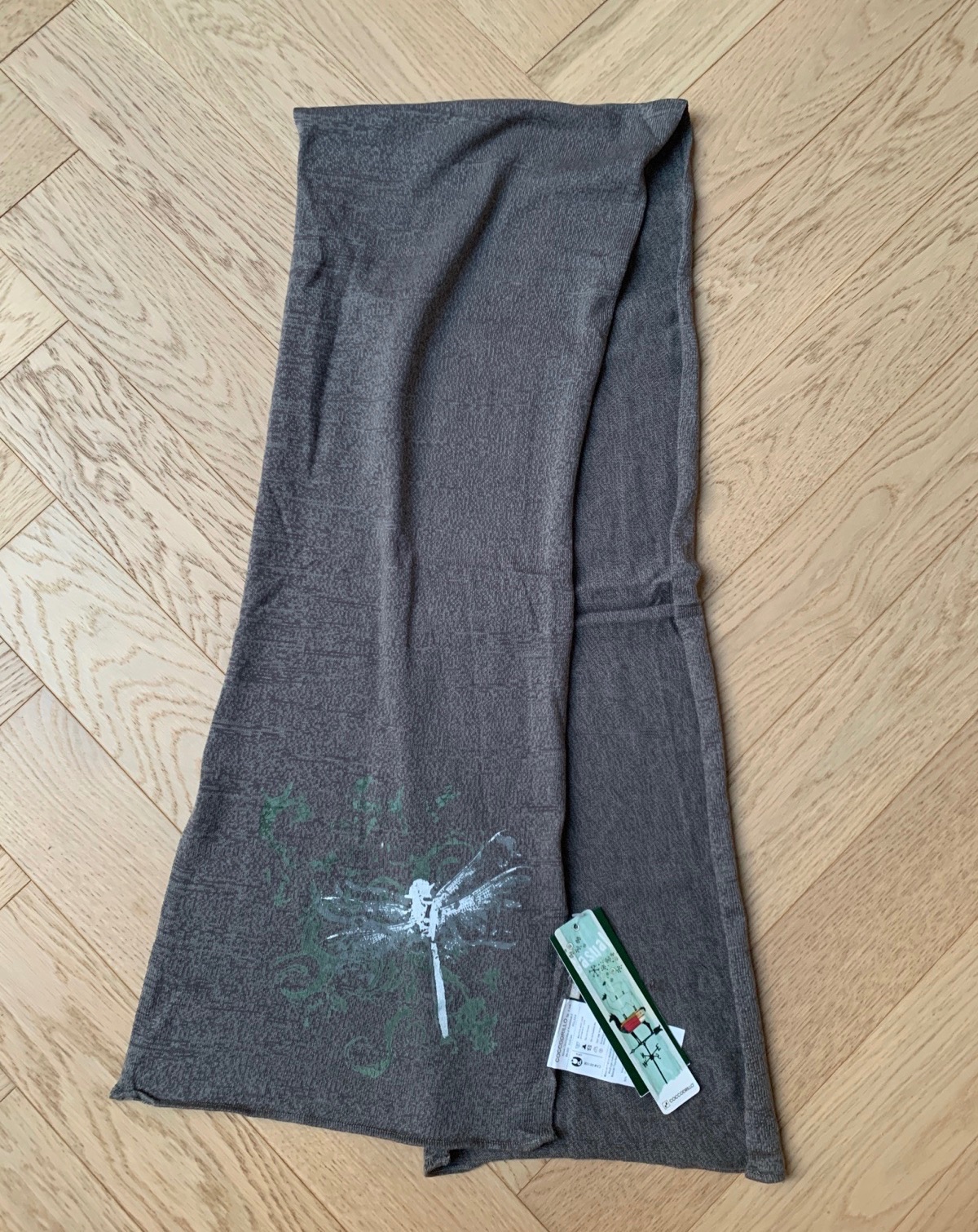 Na predaj nový, s visačkou šál Coccodrillo. Sivá farba so vzorom vážky v bielej a zelenej farbe. Vyrobený z mäkkého a príjemného materiálu, ideálny na jeseň a zimu.