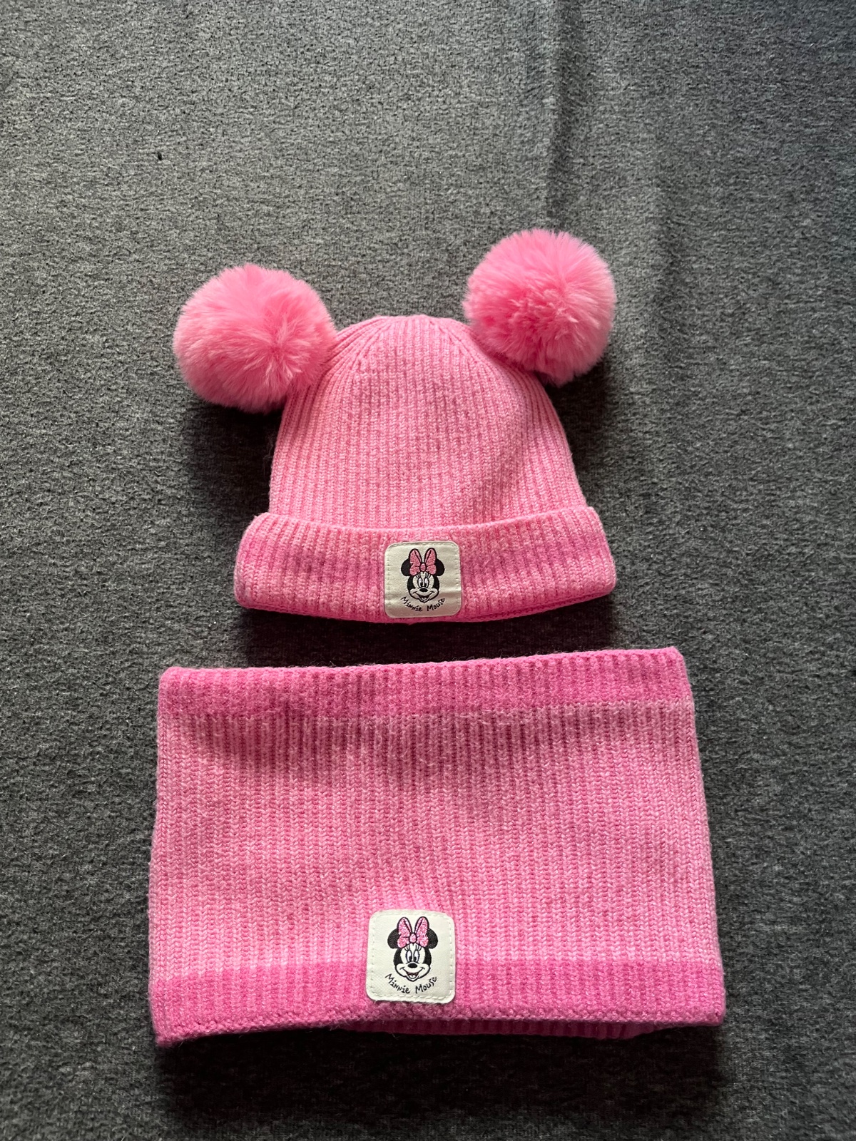 Párkrát oblečený Set Minnie čiapka a nakrčnik obe zateplene fleecom. Top stav Velkost cca 2-4 roky