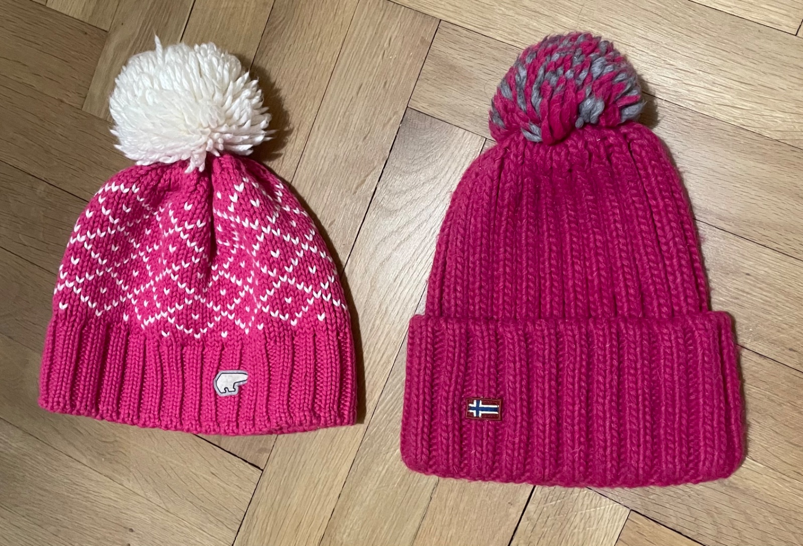 Predám dámske čiapky zn. Napapijri a Eisbär, obe takmer nepoužívané. Cena za jednu čiapku 15€, za obidve spolu 22€.