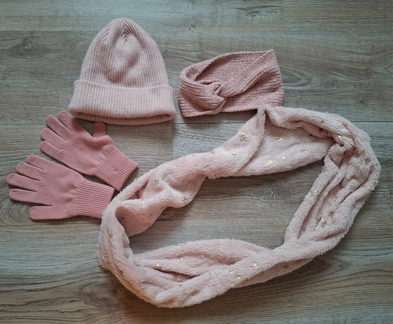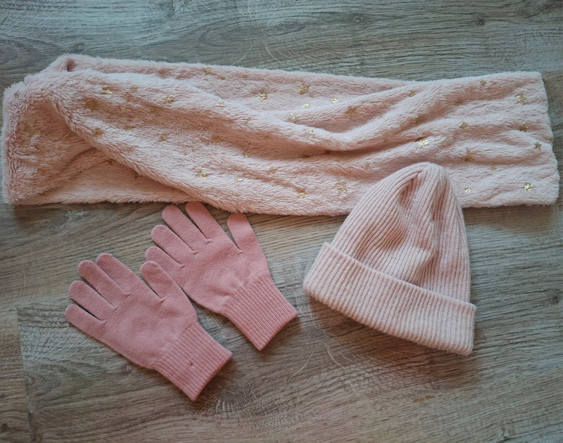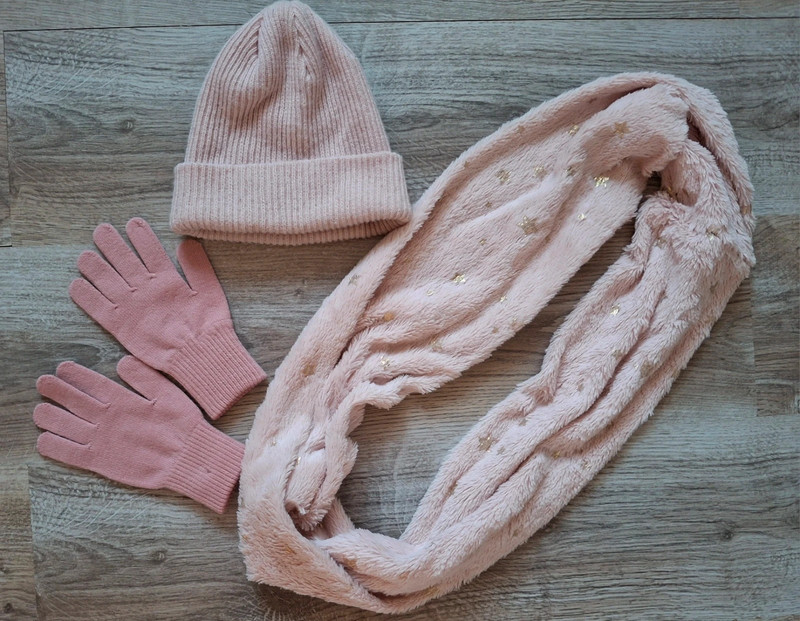 Čiapka v top stave, ako nová, oblečená len párkrát, pletená, vnútri nezateplená, má iba odstrihnutý štítok, veľkosť univerzálna, rozmer 21×21cm, natiahne sa až na obvod 58cm, sedí na cca 8 rokov aj viac, rukavičky úplne nové, vôbec nenosené, HM 134/170, šál oblečený iba párkrát, bez chybičky, rozmer cca 20x140cm. Pletená čelenka nenosená, iba raz odskúšaná, rozmer 12x23cm. Cena za všetko spolu 6 eur.
