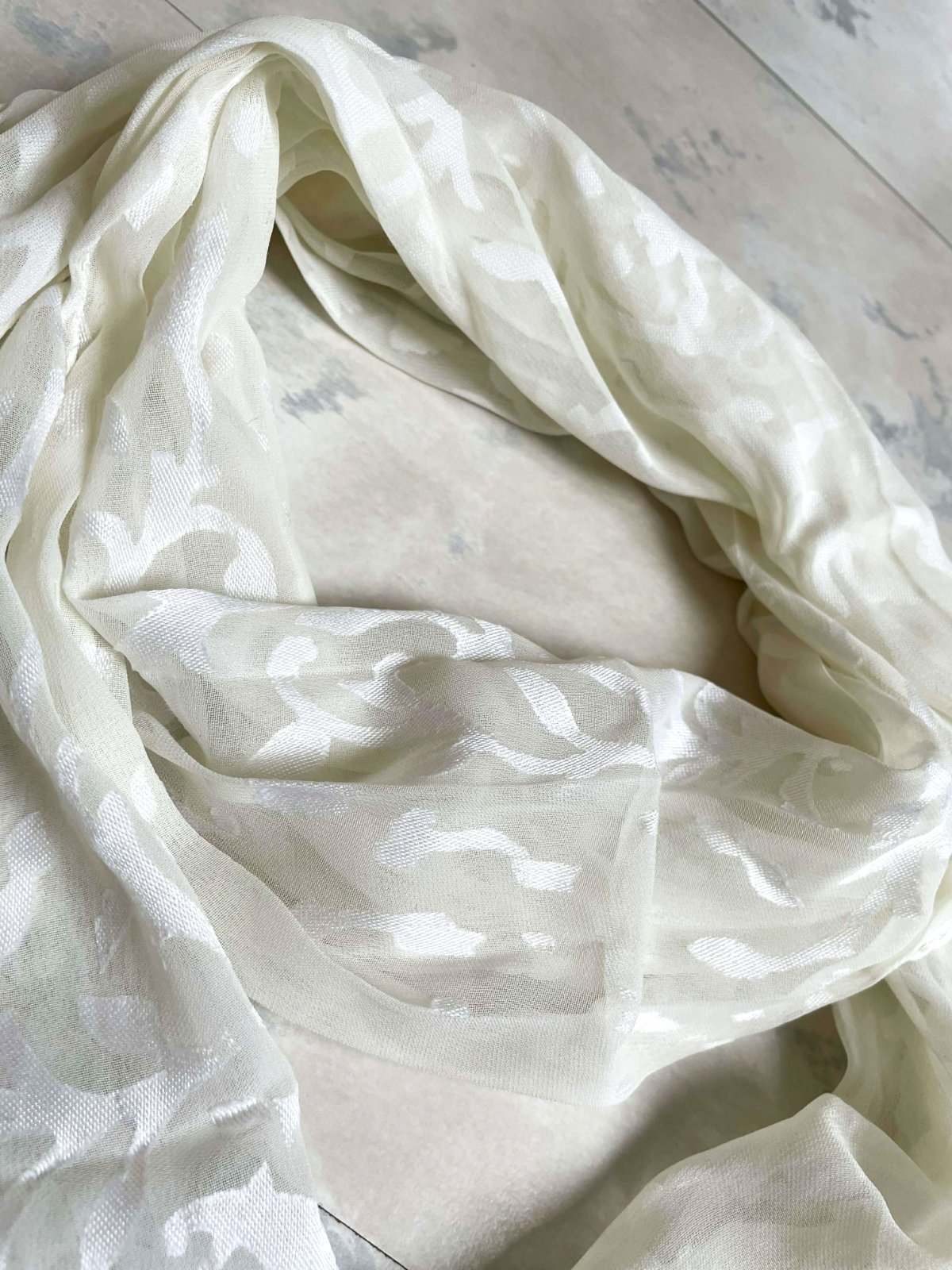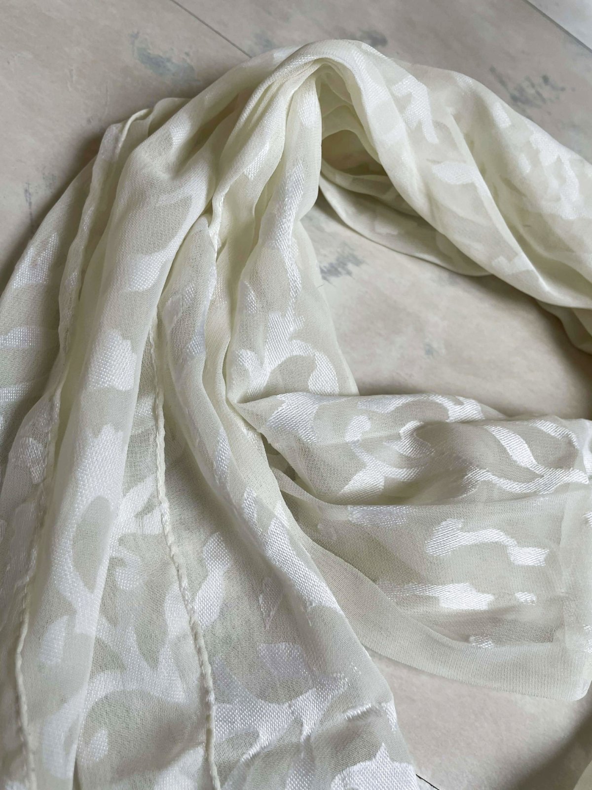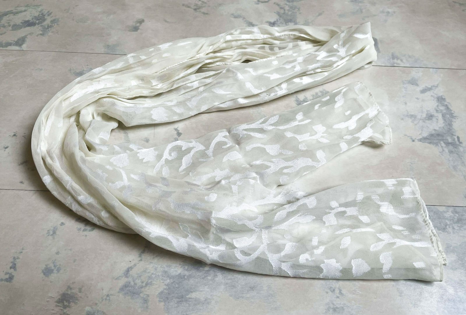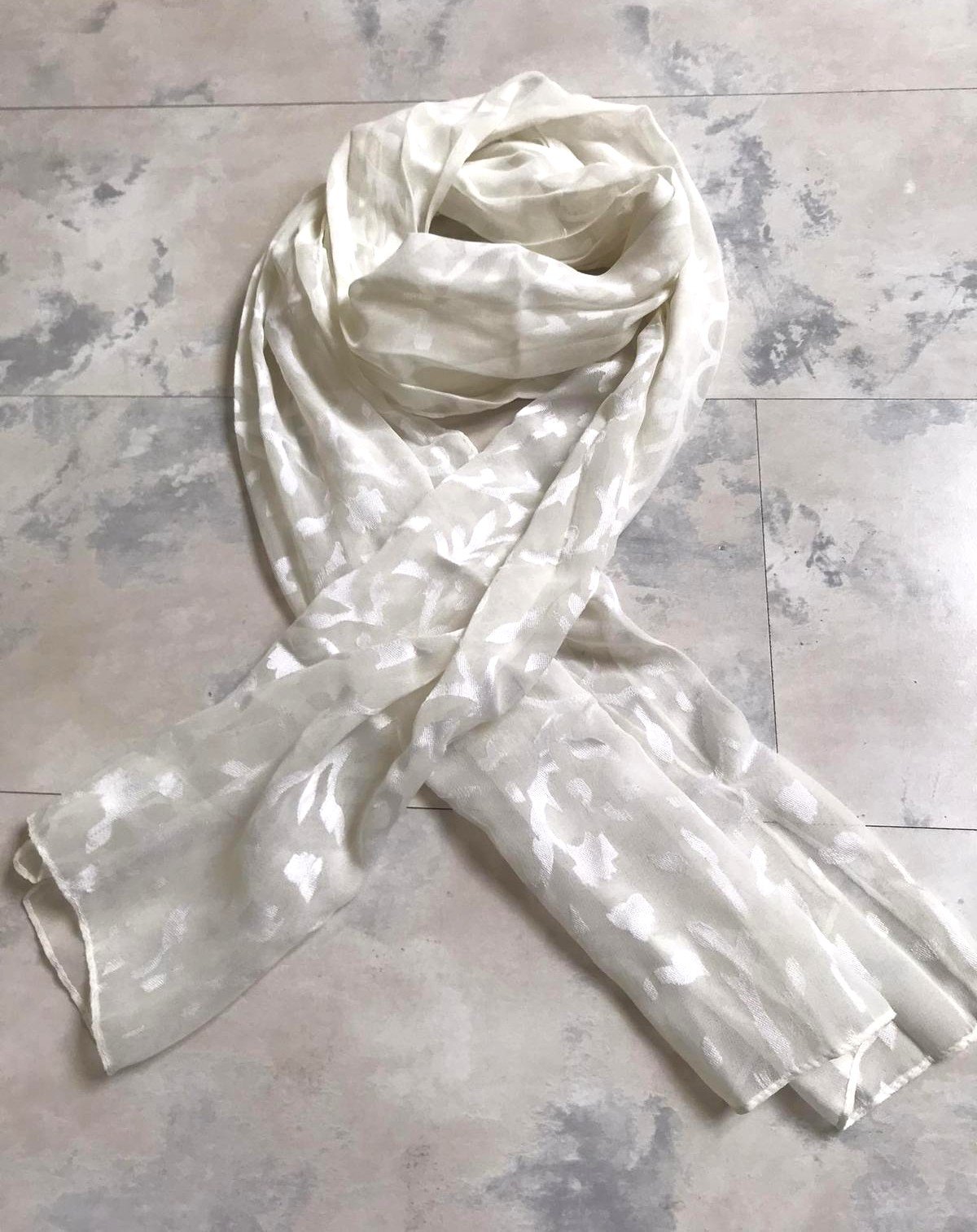 Jemná, priehľadná šatka s listovým textúrovaným vzorom, z viskózy,32 x 165 cm