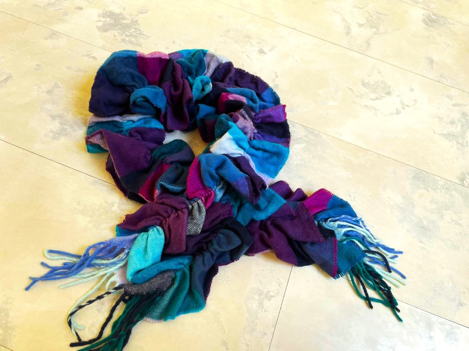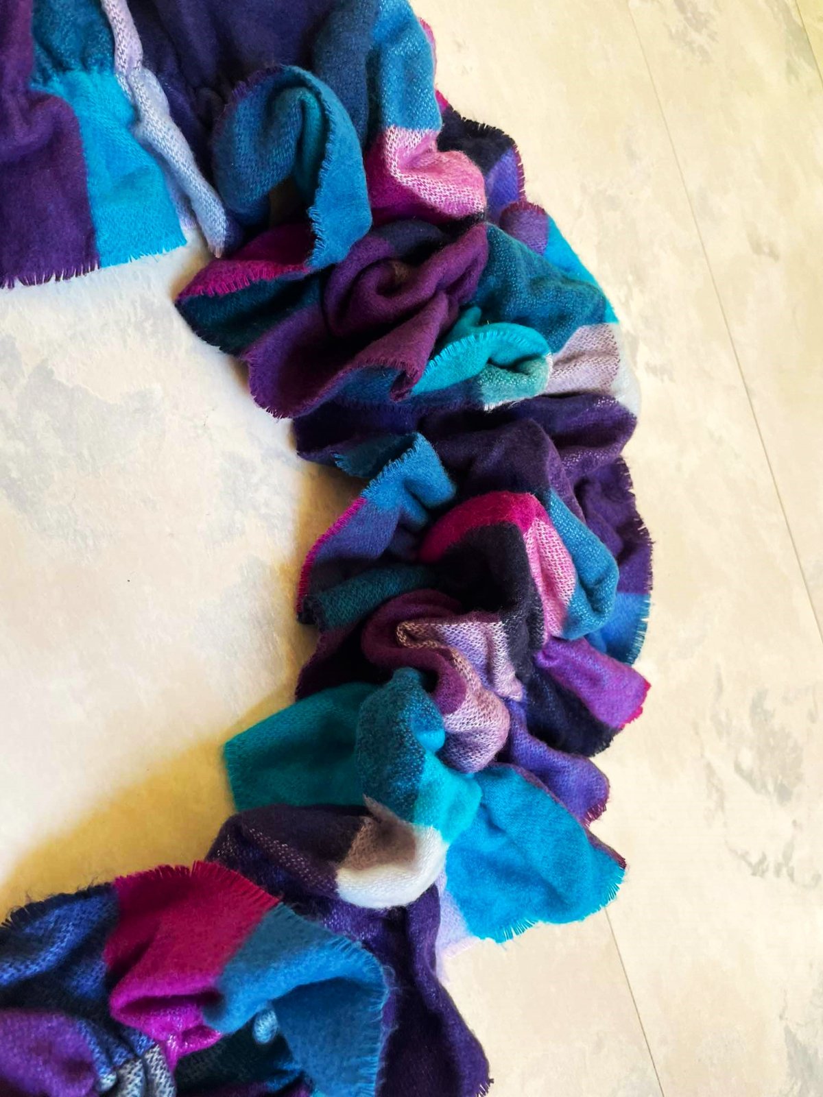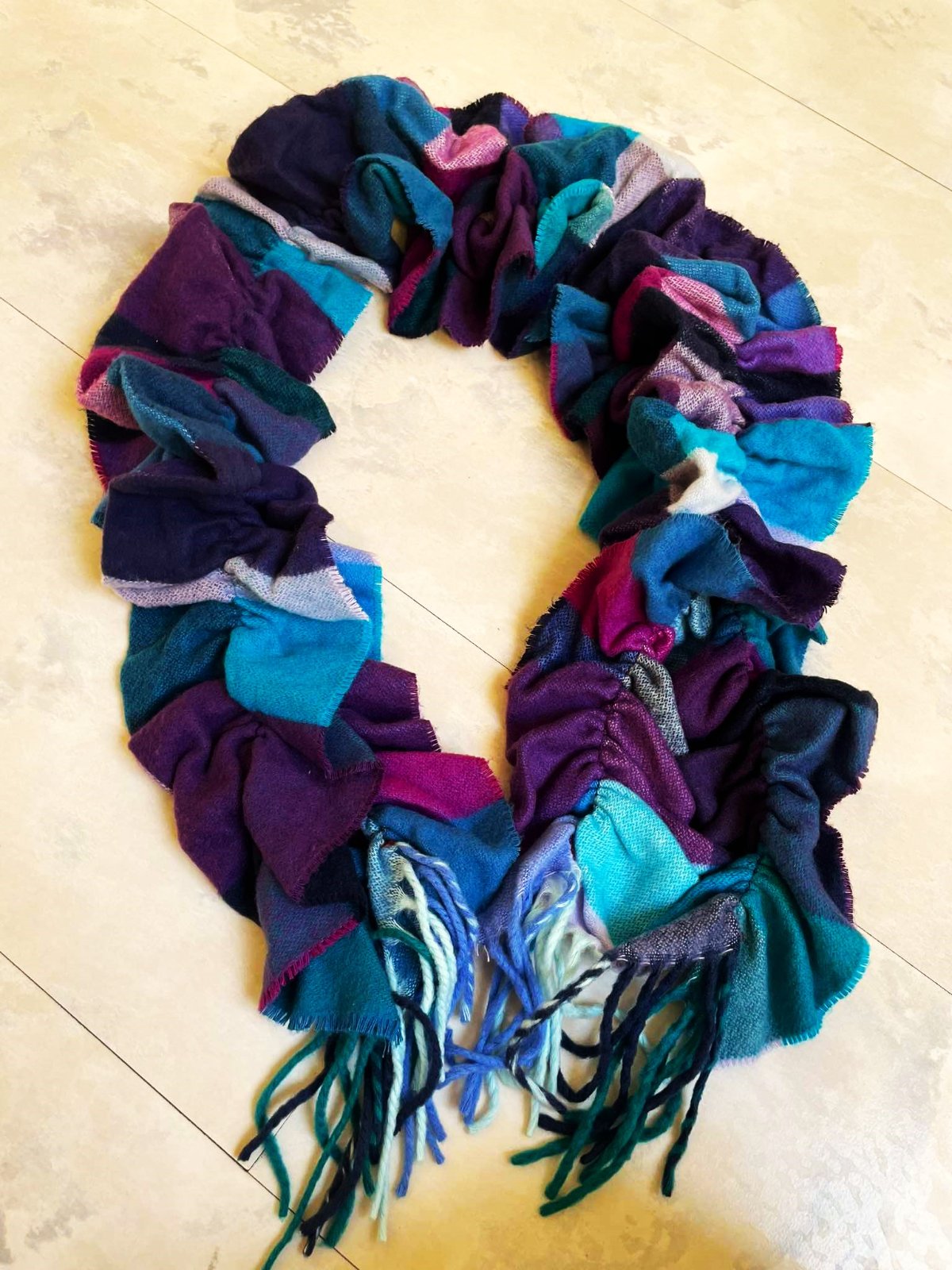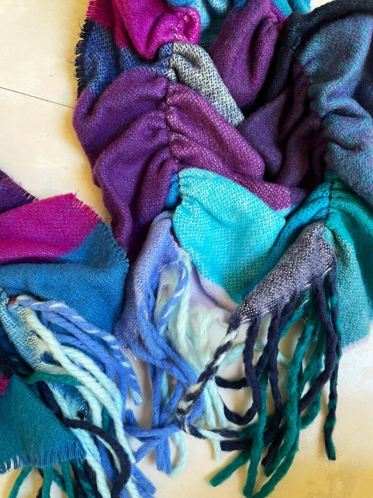 krásny mäkký netuctový šál, - gumičky v 2 radoch - vyzerá ako nariasený,top stav,krásne farby,krásne sa dá aranžovať na krku