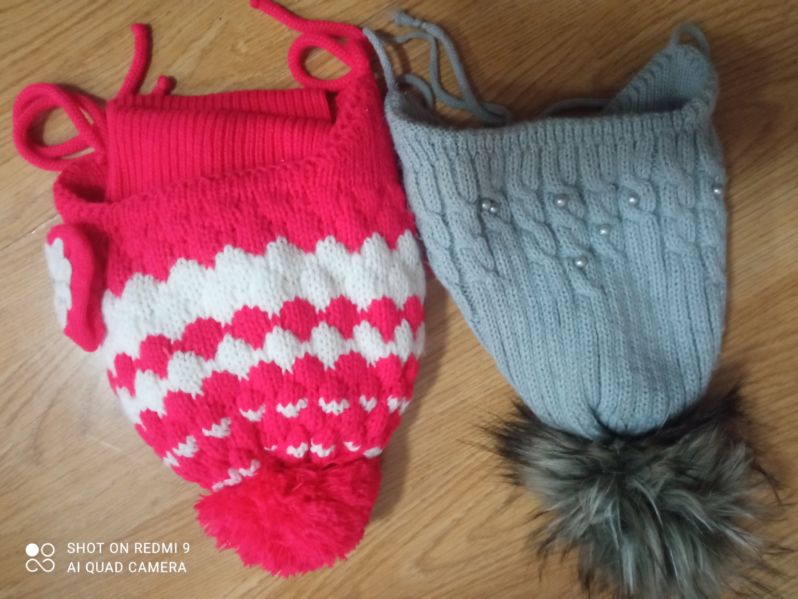 Ružová čiapka so šálom nenosena, šedá nosena 0ar krát. Cena spolu.