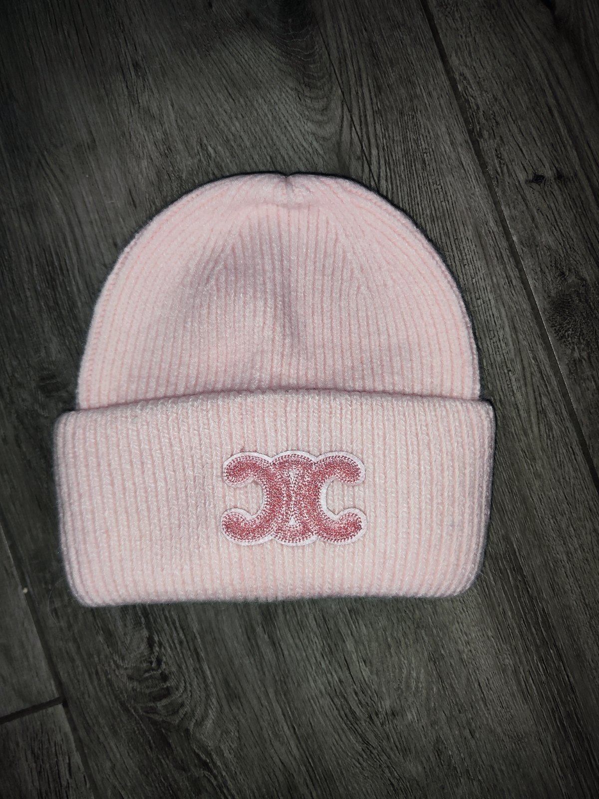 Fashion dámska zimná čiapka, bledoruzova farba. Vpredu logo. stav bez poškodeni.