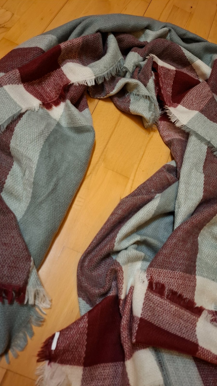 Nádherný mohutný šál, mám pocit, že je to niečo také jemné ako kašmír. Je mäkkučký, všetkého som ho mala asi 3 krát, stál cez 20 Eur. Rozmery: 2,3 m šírka 85 cm.