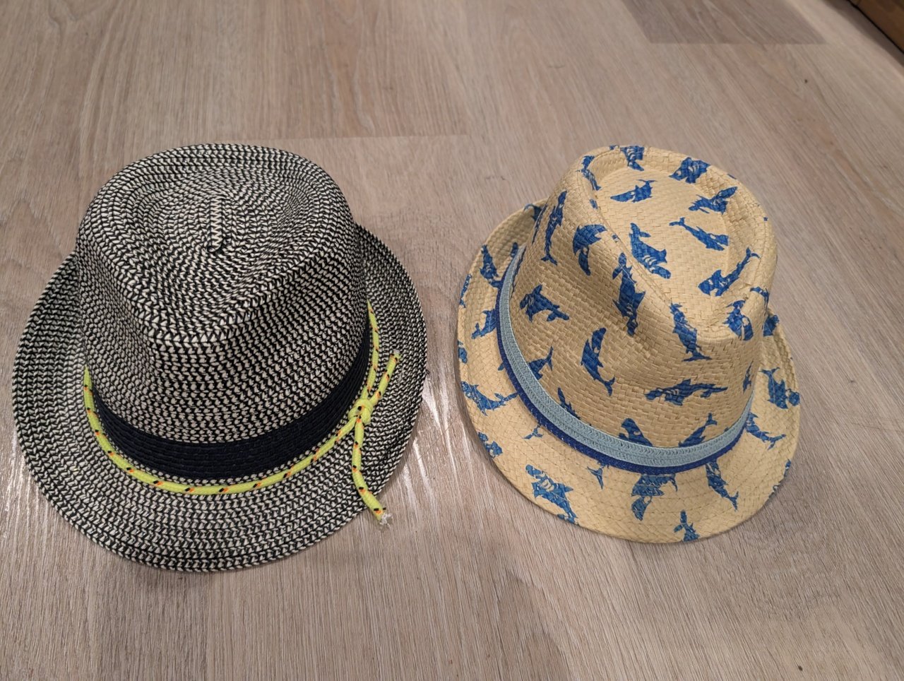 Predám 2x detský letný klobúk, obvod hlavy 56 cm. Klobúky boli nosené jedným dieťaťom, nie sú poškodené. Cena je za oba klobúky, bez poštovného.