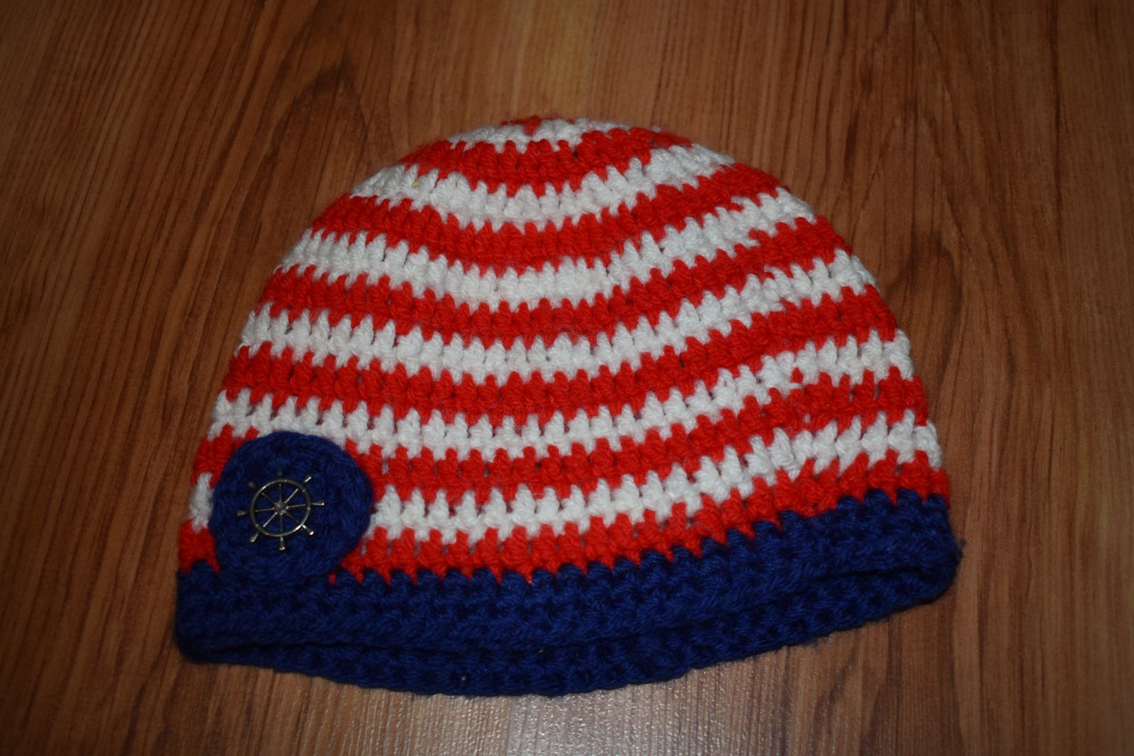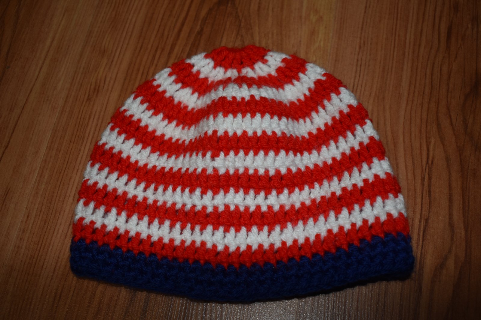 Háčkovaná teplejšia čiapočka nositeľná cca od 2 rokov.