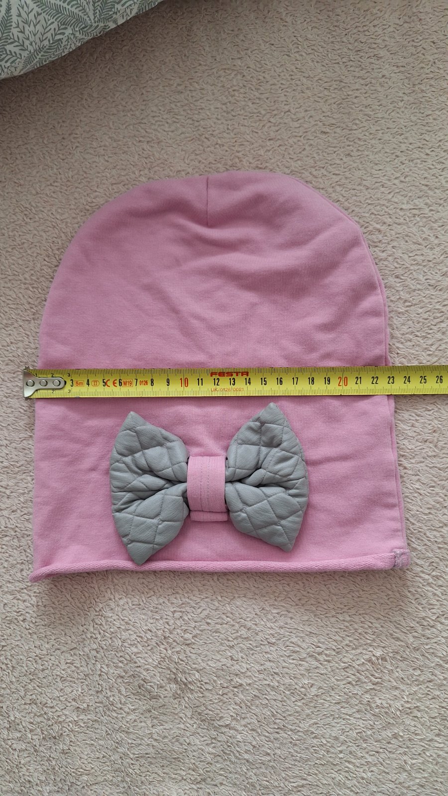 Top stav, pískacie čiapky, veľkosť uvedená na obidvoch čiapkách 5-6, ale sú väčšie. Pozn. na čiapke s mašľou je na zadnej strane menší fľak.