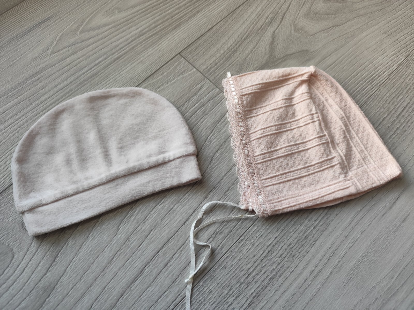 Ciapka pre novorodenca - 1x flaus a 1x prijemny mákky stretch material s uväzovanim na šnúrku