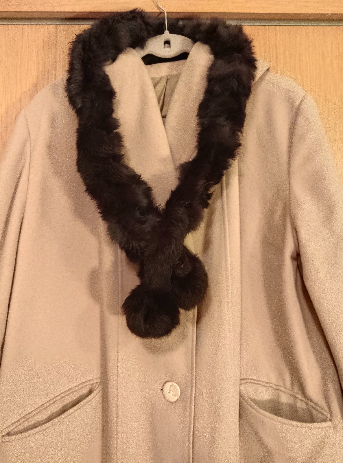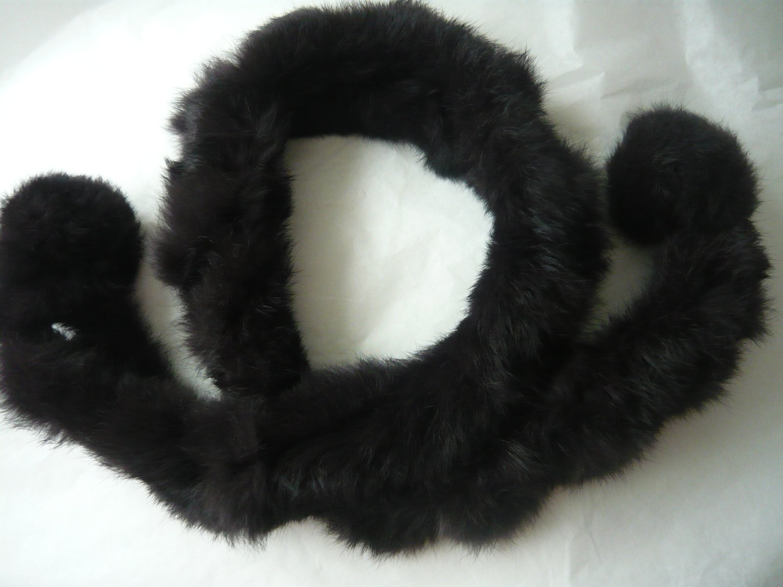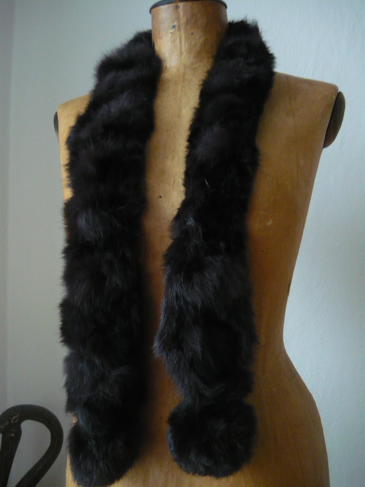 Úzky šál z pravej kožušiny, brmbolce na konci sa dajú prevliecť cez otvory. Veľmi príjemný.