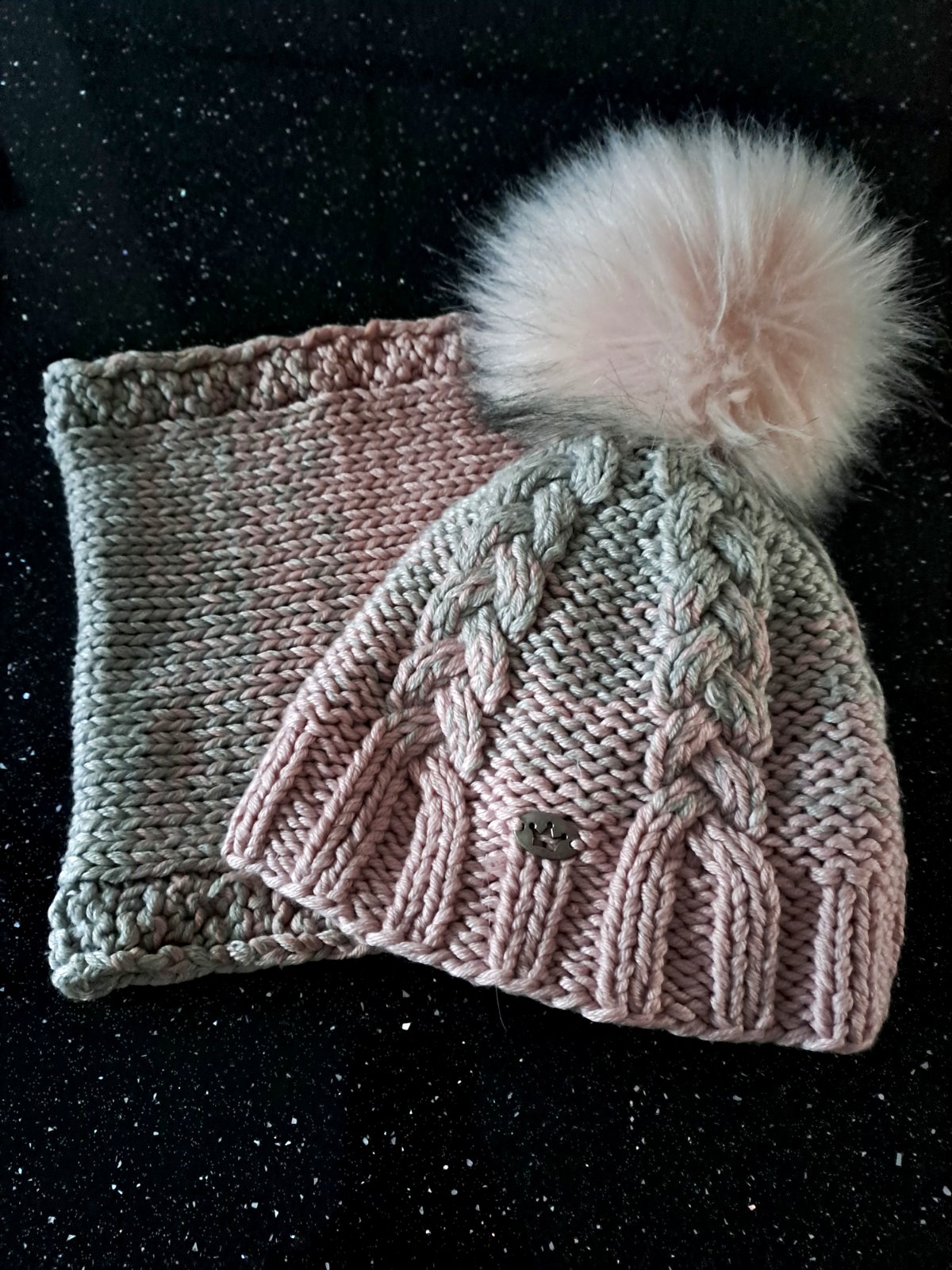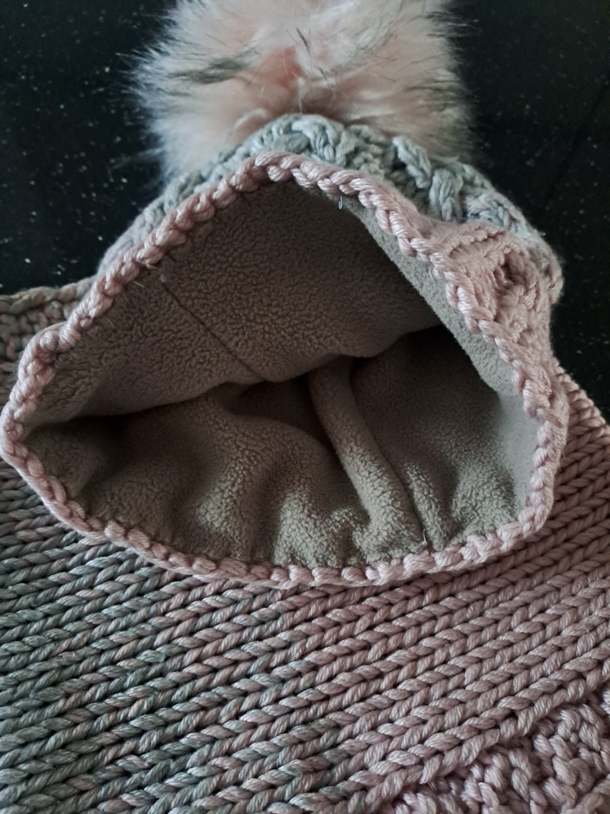 Krásny zimný set čiapky a nákrčníka. Veľmi teplý, čiapka podšitá fleecom, s krásnym veľkým brmbolcom. V super stave.