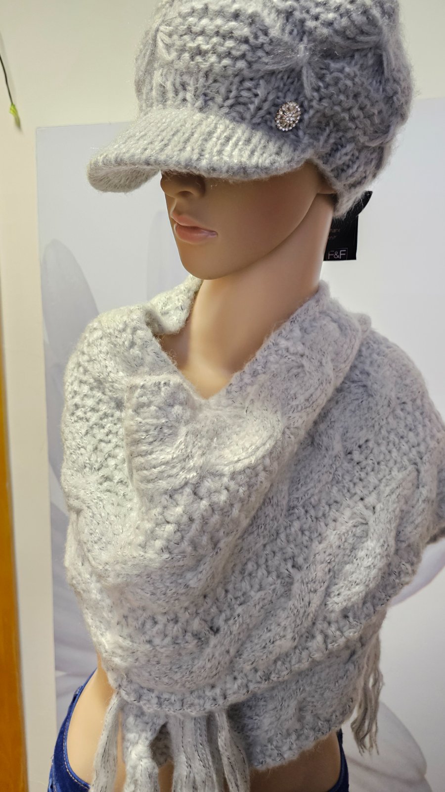 Materiál veľmi príjemný, mäkký acryl. Čiapka veľkost UNI. Vnútorný priemer cca 57cm v kľude. Šál 26 x 165 cm.
