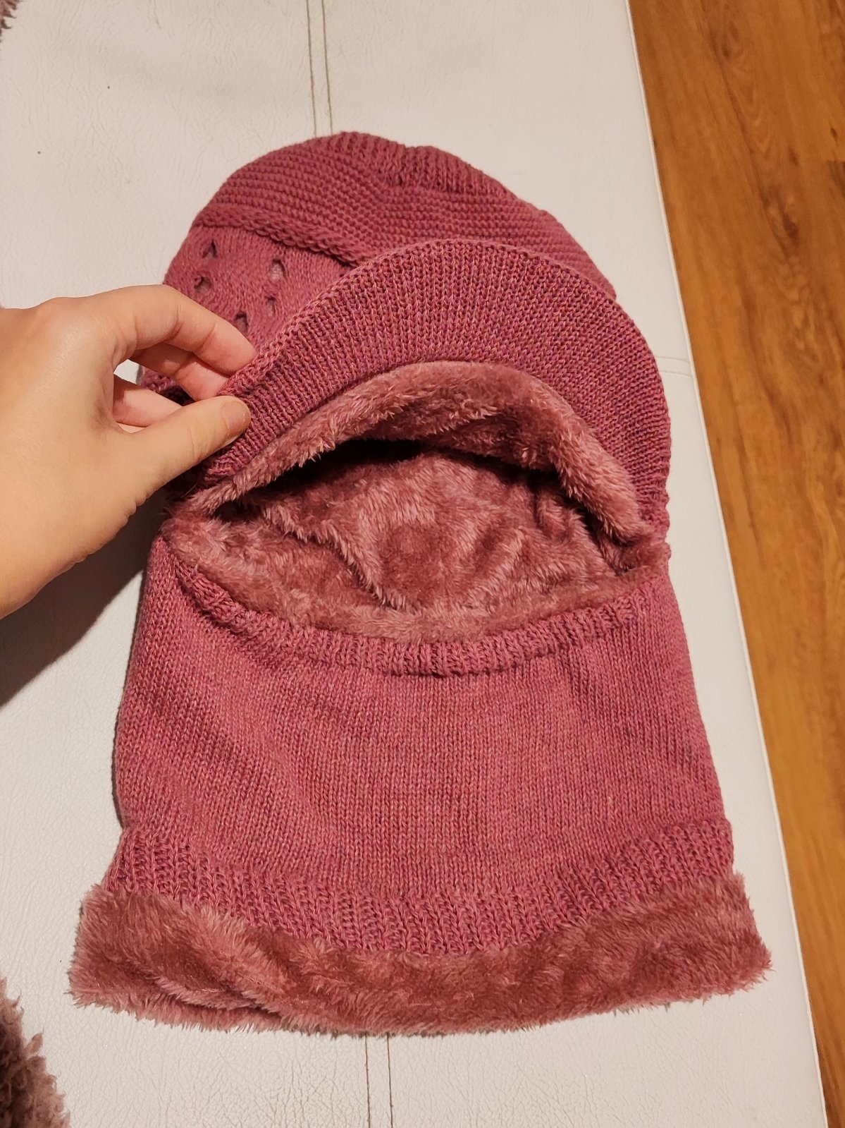 V dobrom nosenom stave, vnútro umelá kožušinka zvonka úplet. Najlepšia pre velkosť hlavy 52-54.