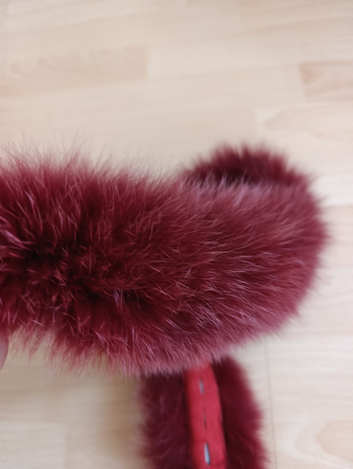 Kožušina na kapucňu,sú tam dierky,stačí si na bundu prišiť gombíky.Dlzka 74, šírka 10 CM aj chlpami.Farba bordová so svetlejšími koncami.