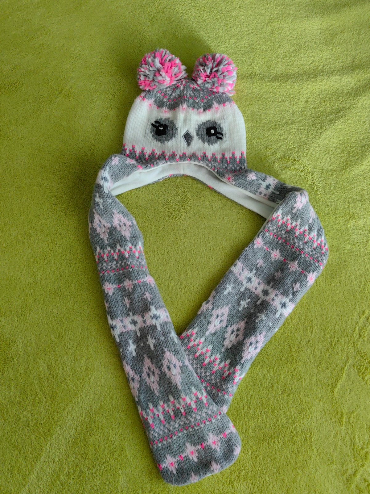 Raz oblečená čiapka značky The Children´s Place, v top stave. Spojená so šálom. Dovezená z Kanady, dcére sa nepáčila... Šál zakončený tak, že je možnosť si do neho vložiť ruky - viď foto. Písaná veľkosť na 4-7 rokov. Osobný odber v Bratislave, alebo poštou, poštovné nie je zahrnuté v cene.