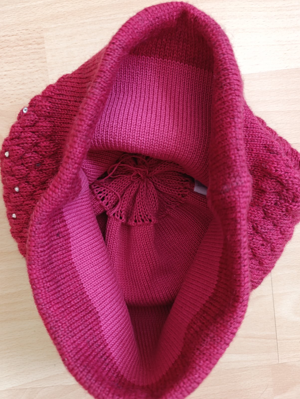 Krásna farba,Malinovo červená, dvojitá, teplá.Vpredu lesklé trblietky