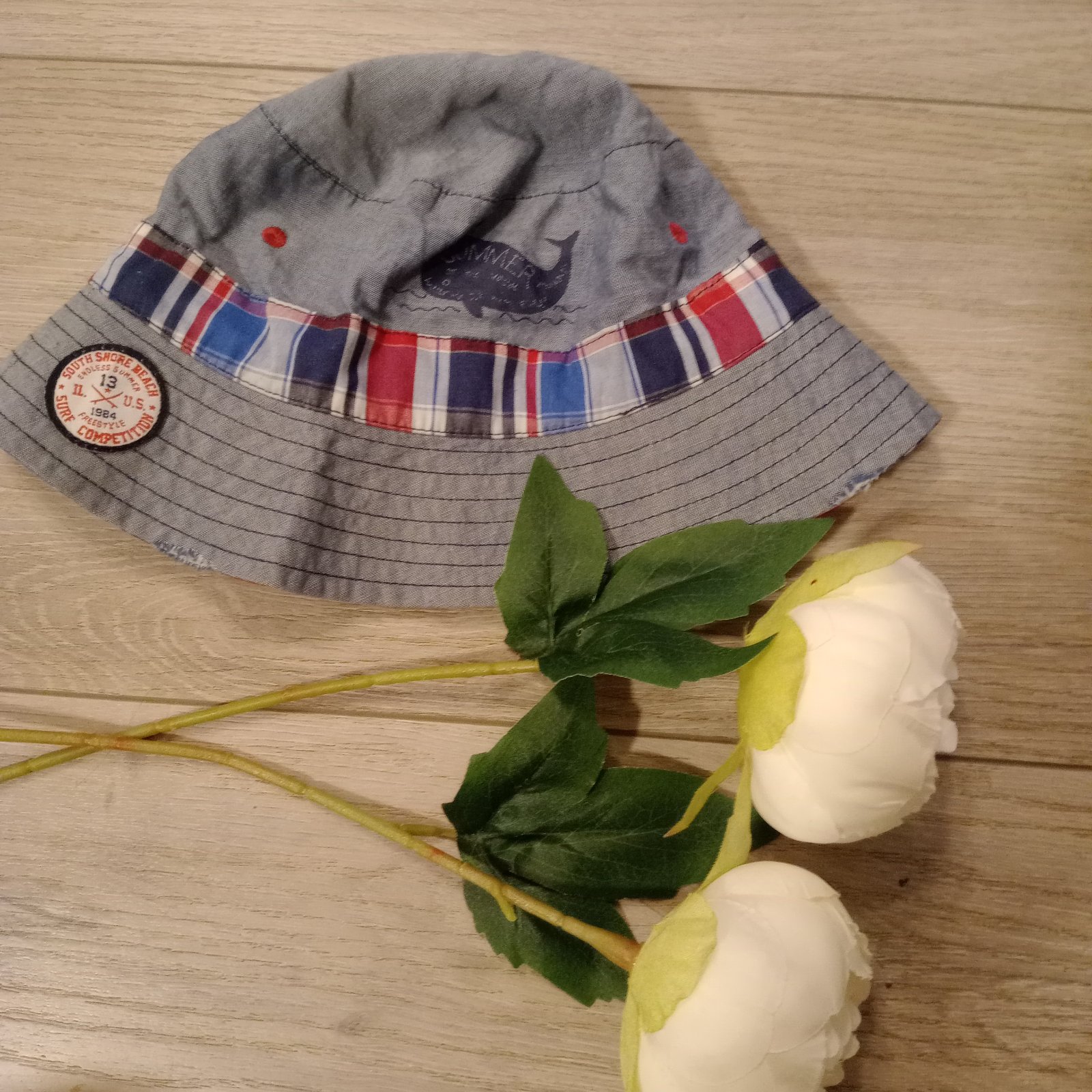 Veľmi pekný,máličko nosený klobúčik.Veľkosť písaná 4-8 rokov.Záleží od veľkosti hlavy. Obvod 54cm