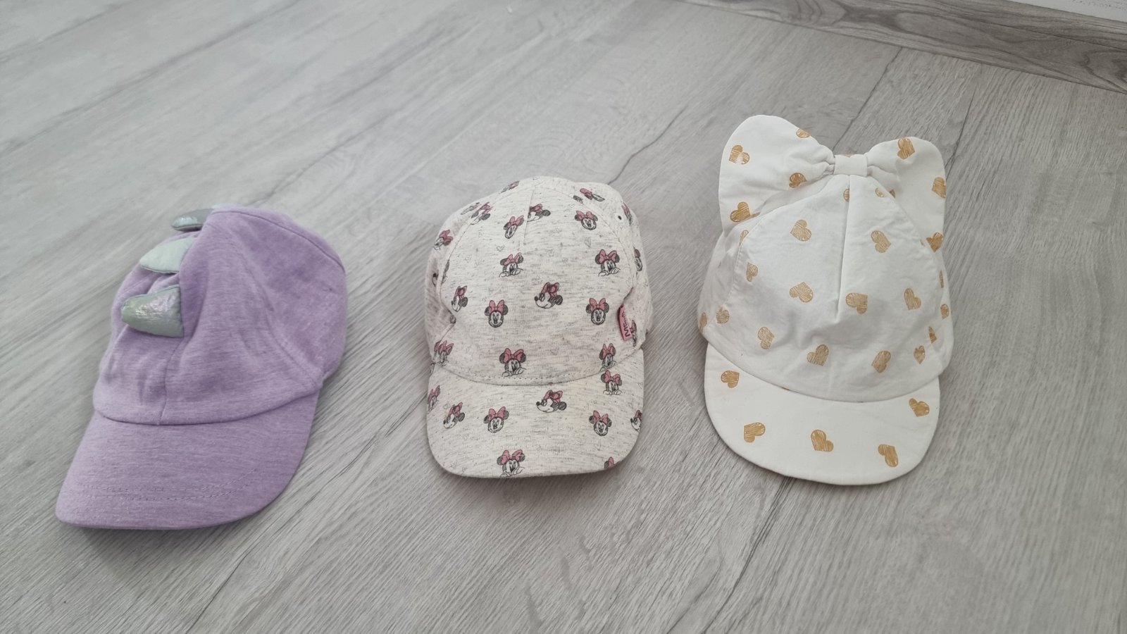 Predám krásne šiltovky, minnie mouse h&m málo nosená 4€, fialová next s dino ostňami krásna ale nosená viac, stále v peknom stave 5€ a biela coccodrillo s mašľou na vrchu asi 1-2x použitá 5€. Cena spolu za všetky 10€