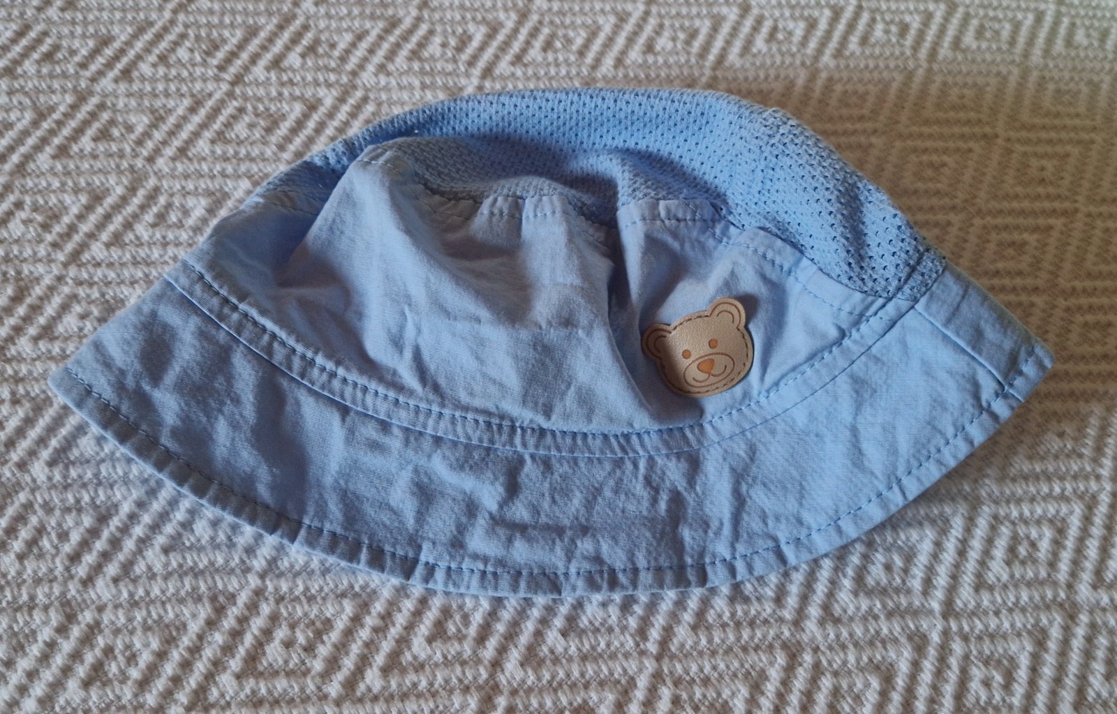 Bavlnený vzdušný klobúčik. V super stave. Vzadu je gumička. Na obvod hlavy 50 cm