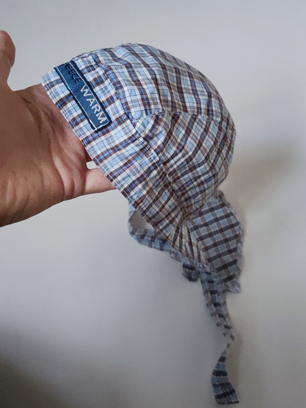 Chlapčenská letná čiapka so šiltom, má viazanie pod krkom a vzadu je predĺžená, aby nesvietilo slnko na krk.