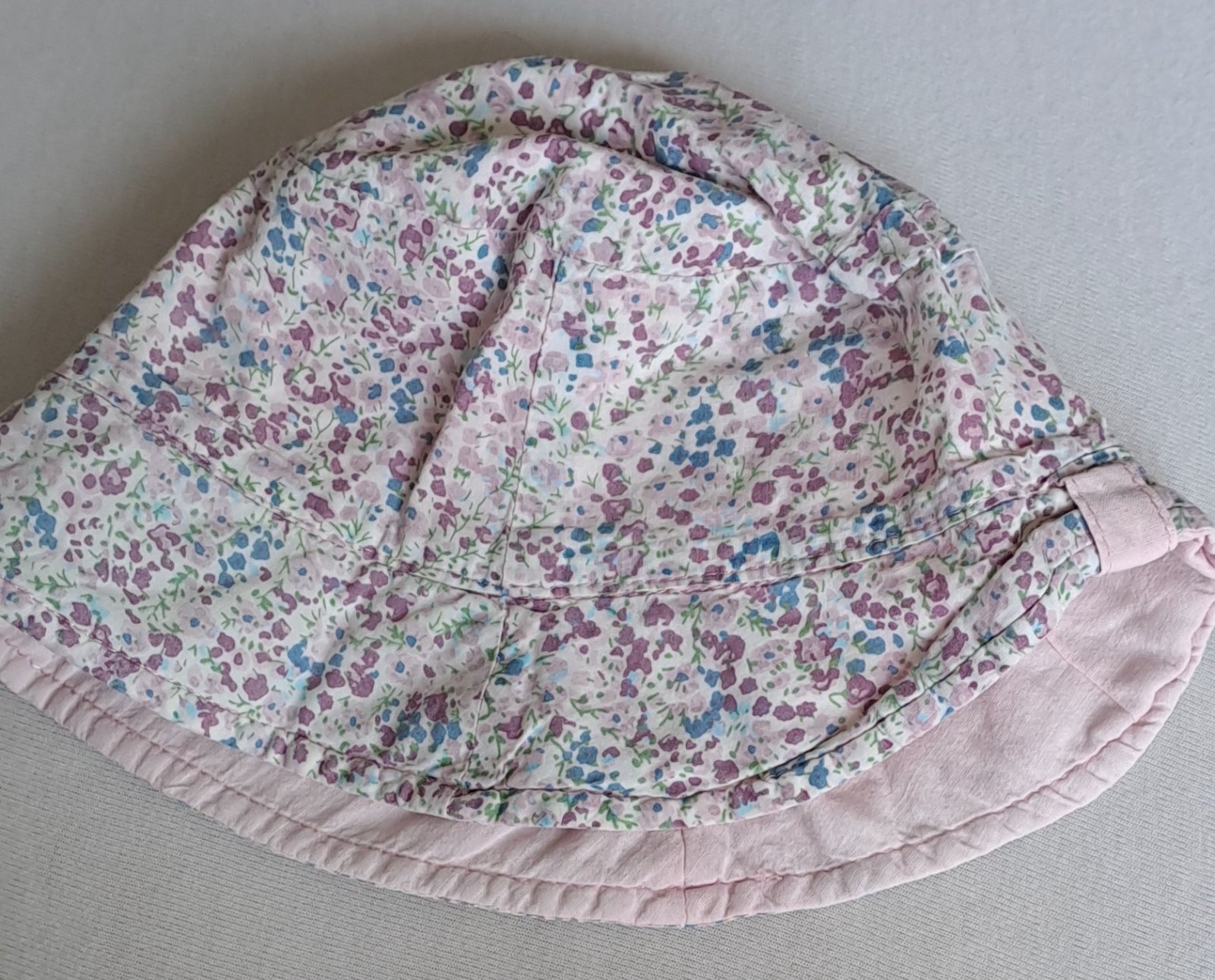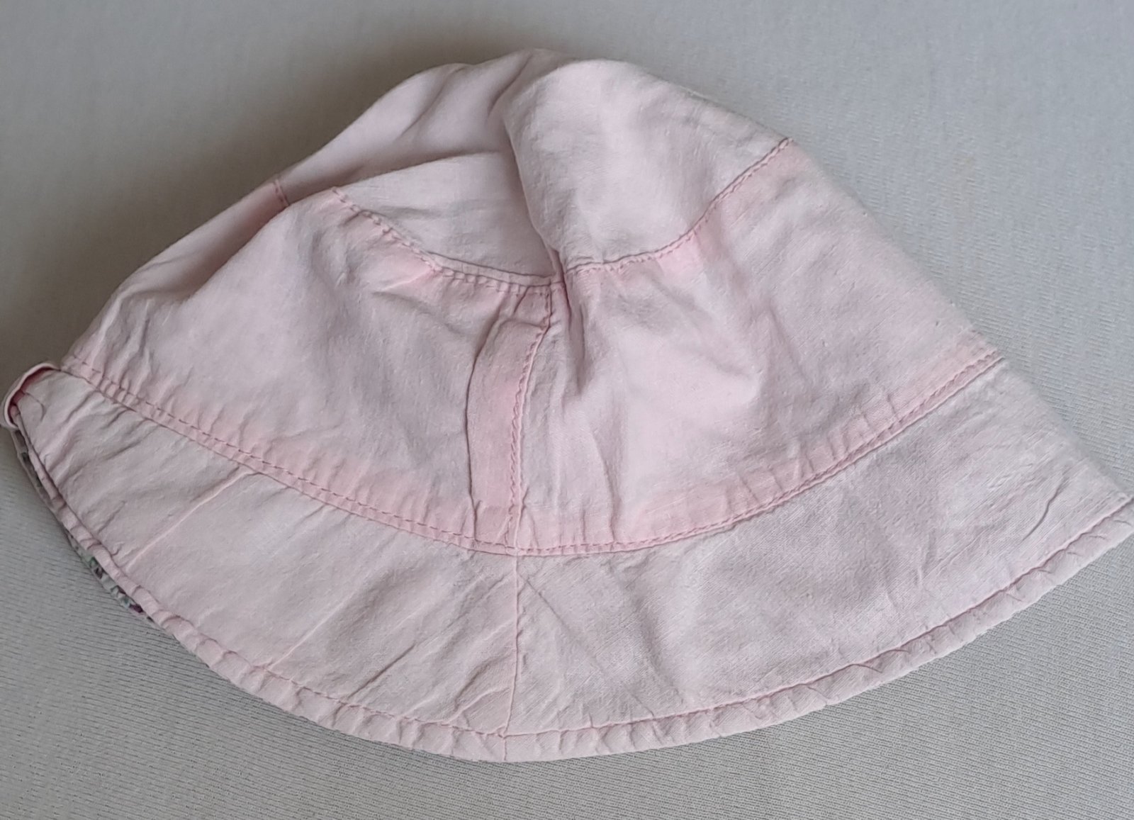Bledoruzovy, bavlneny klobucik, je z hrubsej latky (ako z rifloviny, len ruzovej farby), obvod klobucika 46cm. Top stav.