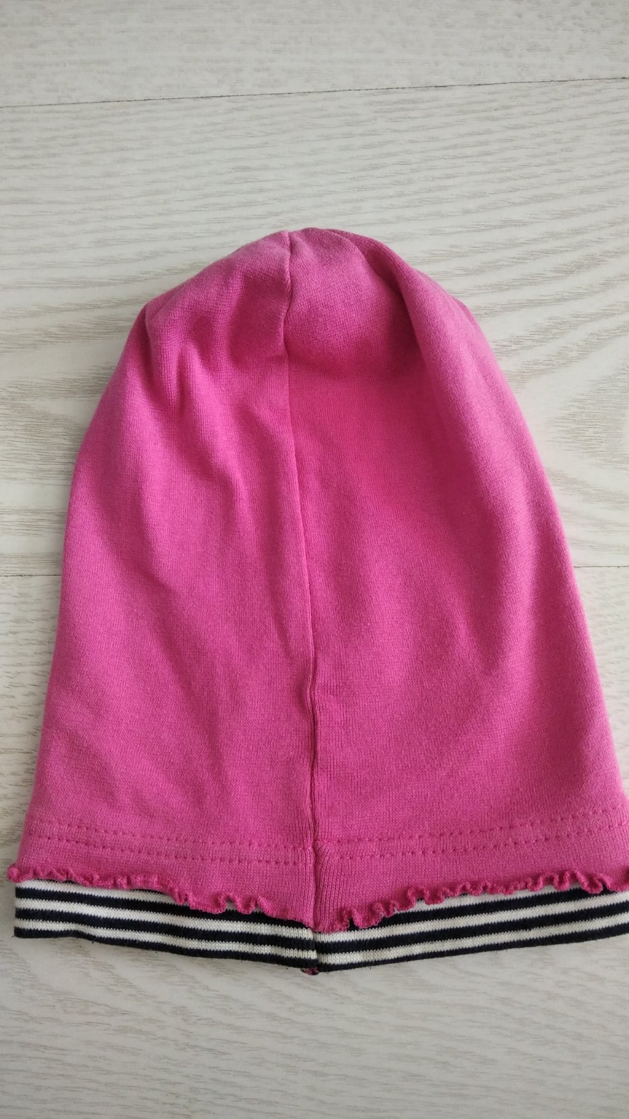 Nosena čiapka, vhodná skôr na doma, má poškodenie od žehličky