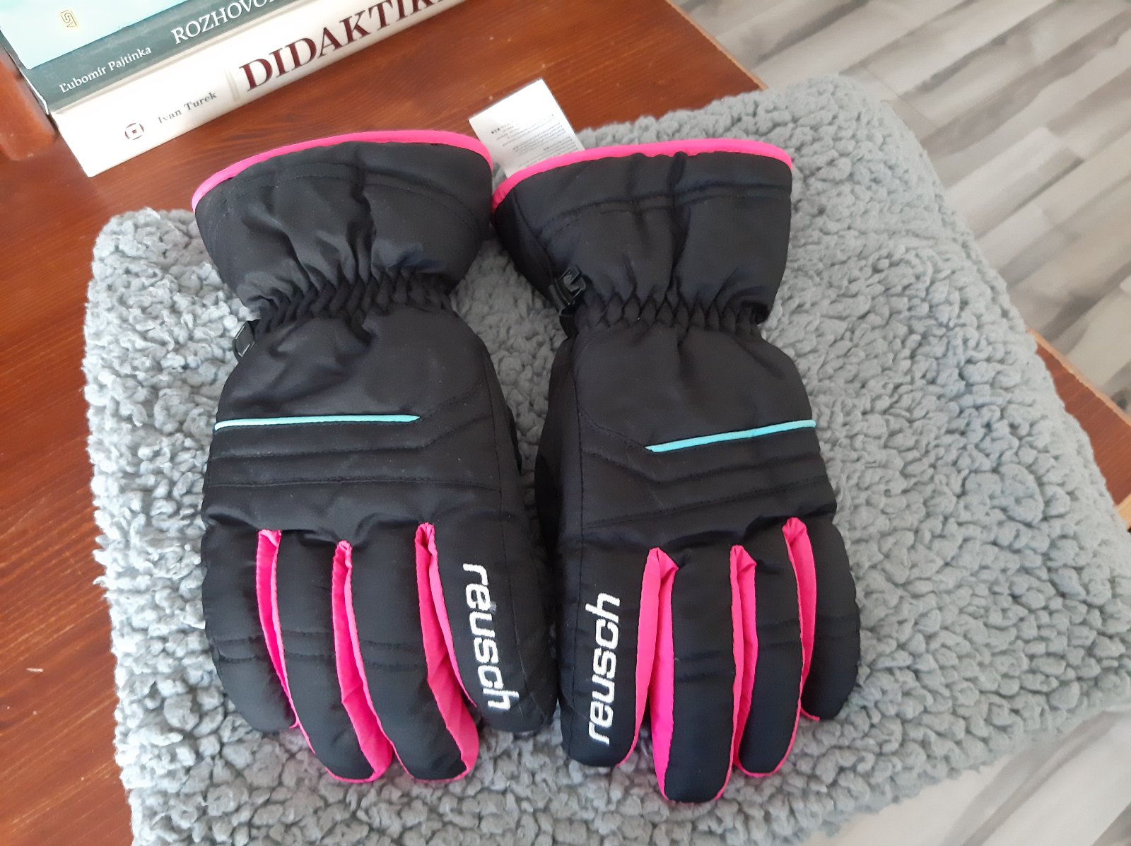 Značka Reusch, velkost M, EU 5,5, teple, raz na ruke. Na malu zensku ruku. Skor su to dievcenske, detske.