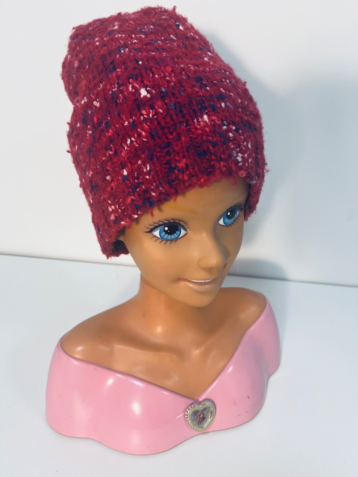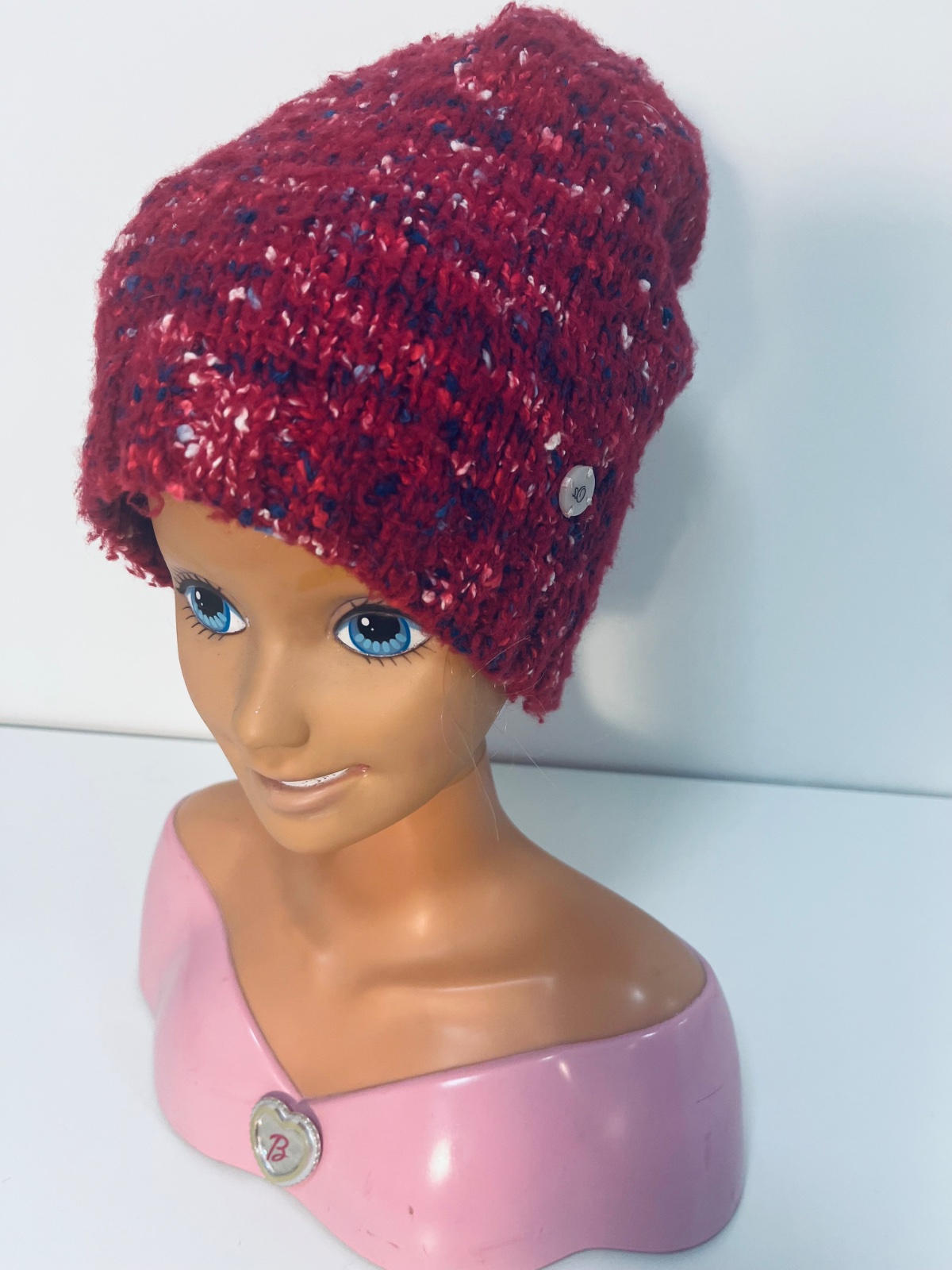 Nádherná farba: Sýta bordová s jemným melírovaným efektom (tmavomodré a biele akcenty) 🧶