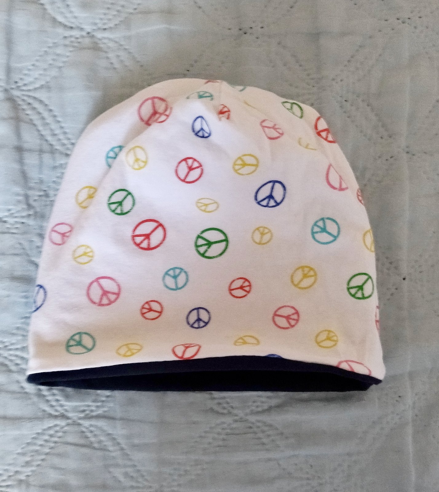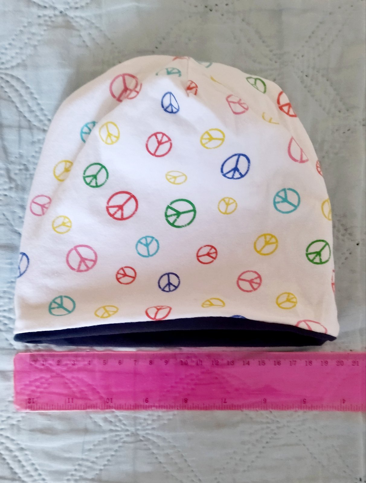 Dvojvrstvova jednofarebna čiapka, má 21 cm v kľude dá sa natiahnuť na 26 cm. Nosiť sa dá od 12-24 mesiacov. Super jemná farba