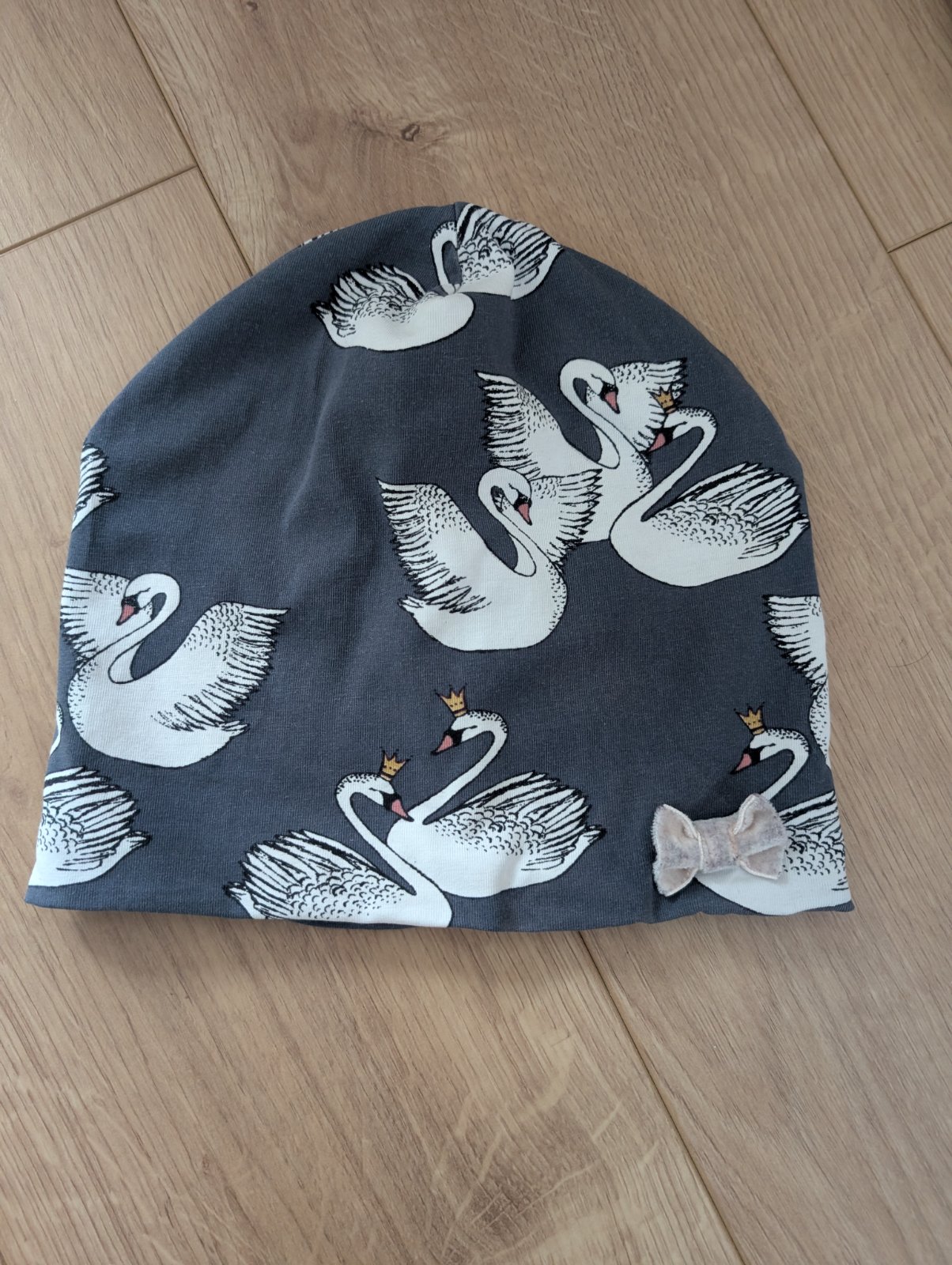 Krásna čiapka značky Lindex, vnútro je zateplené flísom. Je nosená na striedačku s inými, veľmi dobrý stav (na mašličke vidno nosenie).Veľkosť 56-58. Dcéra nosila v cca 6-8 rokoch. Mám aj iný vzor v ponuke.