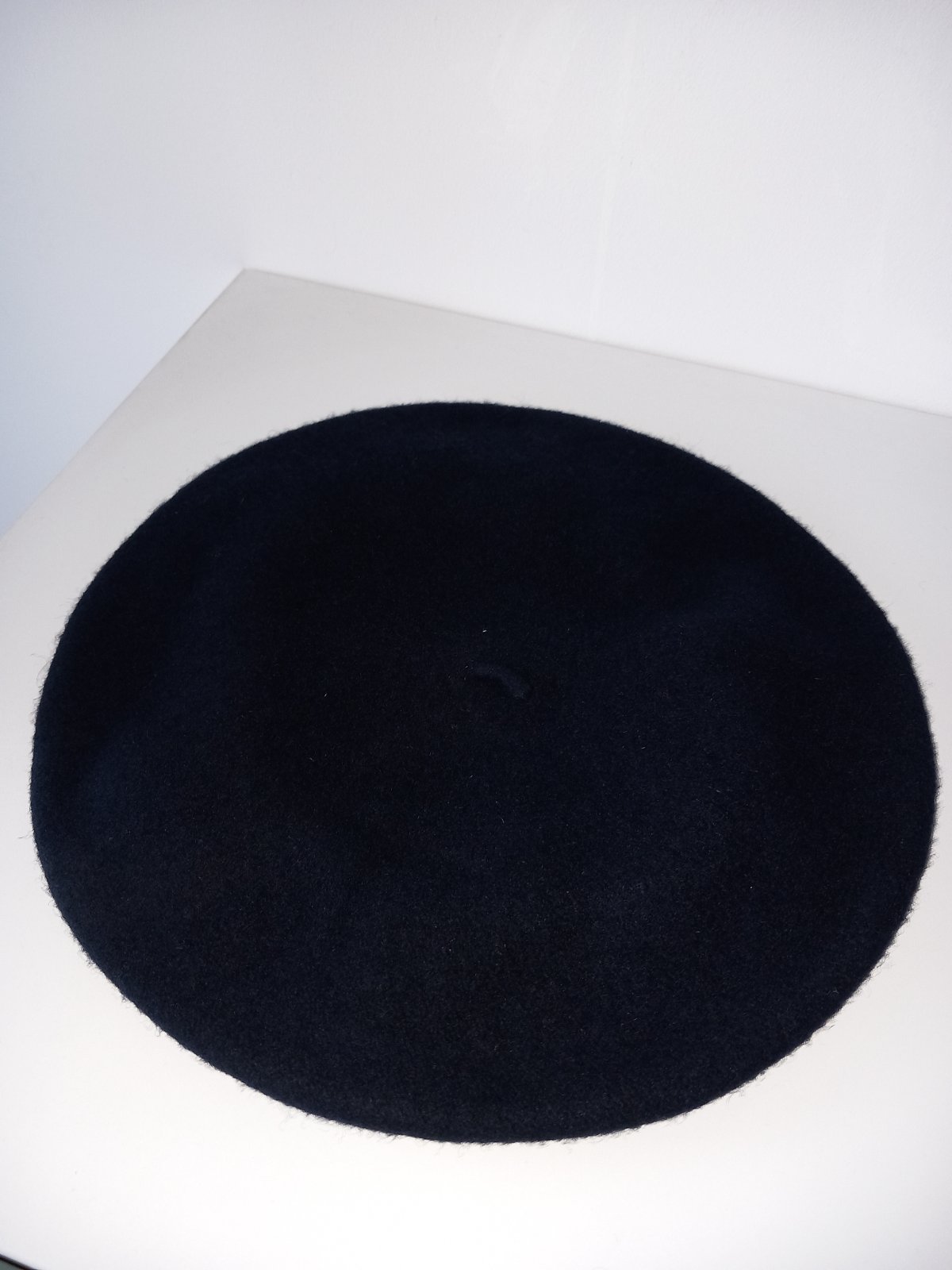 Pekná vlnená baretka v tmavomodrej (navy blue) až čiernej farbe.