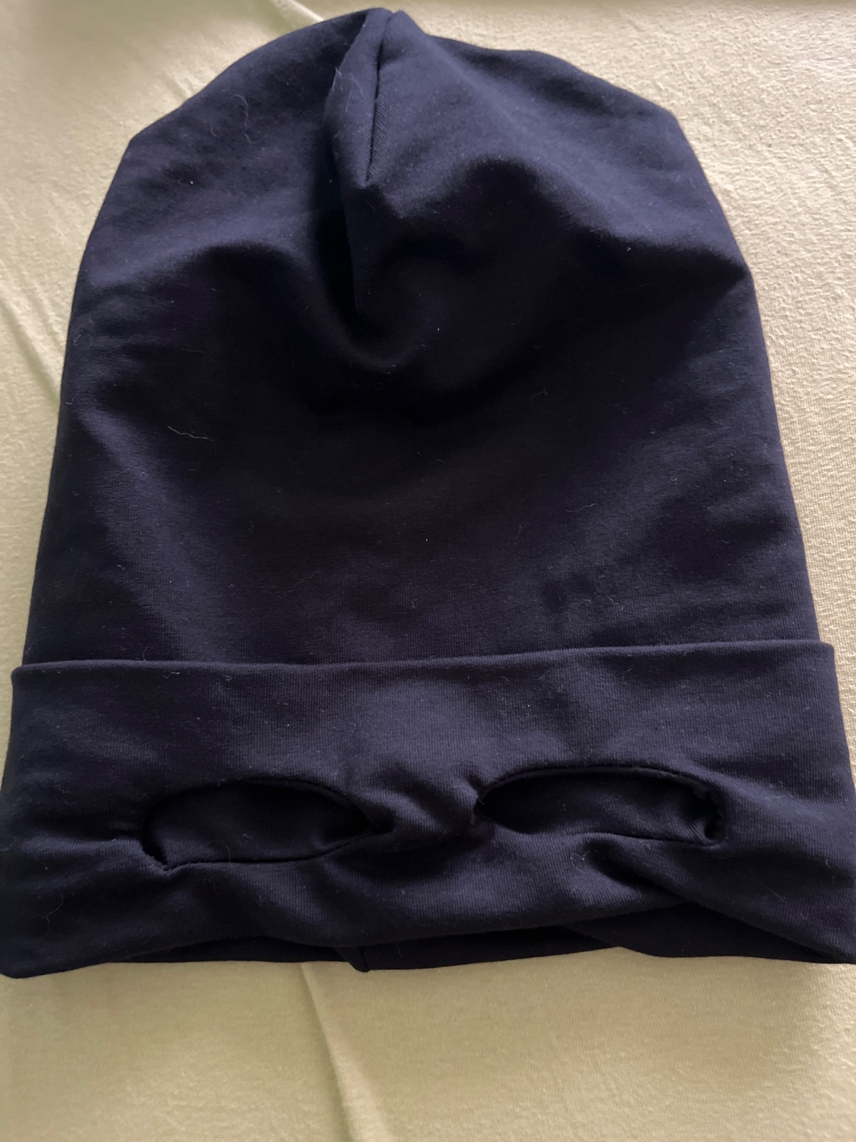 oblecena parkrat, neposkodena, presne velkosti ciapky XL najdete na stranke Little People. ma lem akoze maska, da sa to stiahnut, je dvojito podsita. Na prechodne obdobie super.