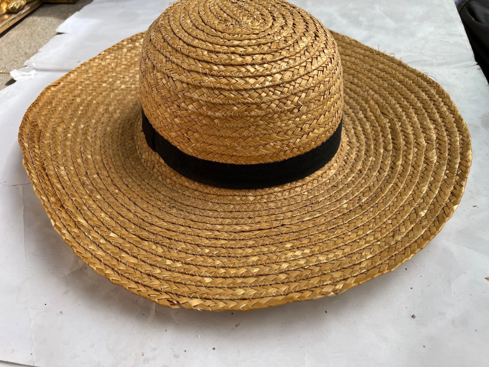 Suprovy vacsi kvalitny pevny taliansky klobuk s ciernou stuhou Klobuk je pevny , cize sa nepokrci pc 35€ vzaty raz na fotenie 11€