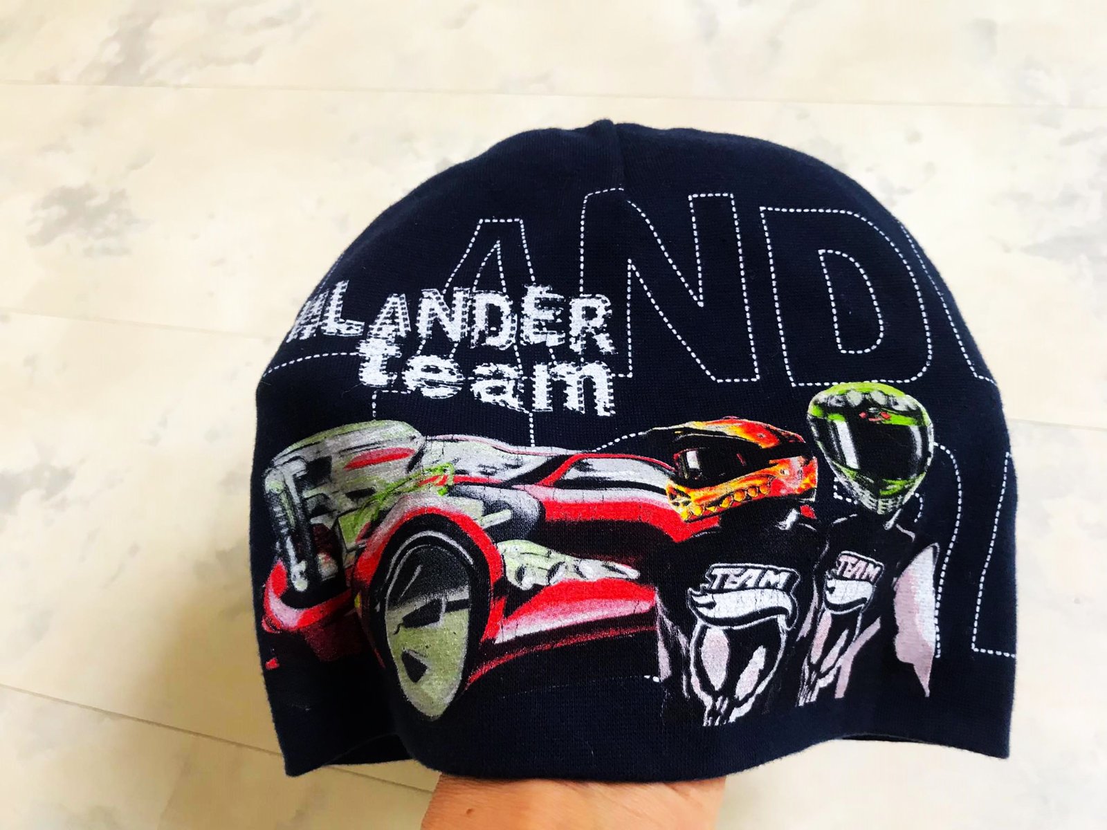veľmi kvalitná čiapka - je iba prepraná po sladovaní,duplovaná,z tenšej tričkoviny- ale pevná,top stav,výška v strede = 19 cm, spodok obvod = 24,5 x 2 cm, ale poddá sa,je to pružná bavlna,95% ba,5% elastan