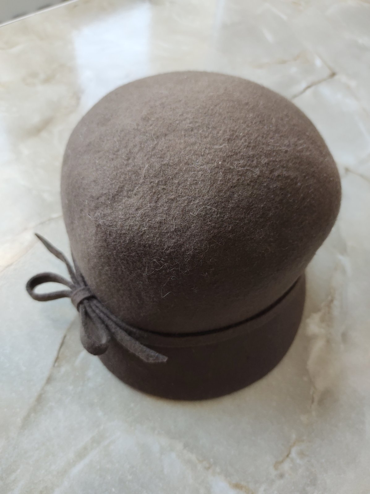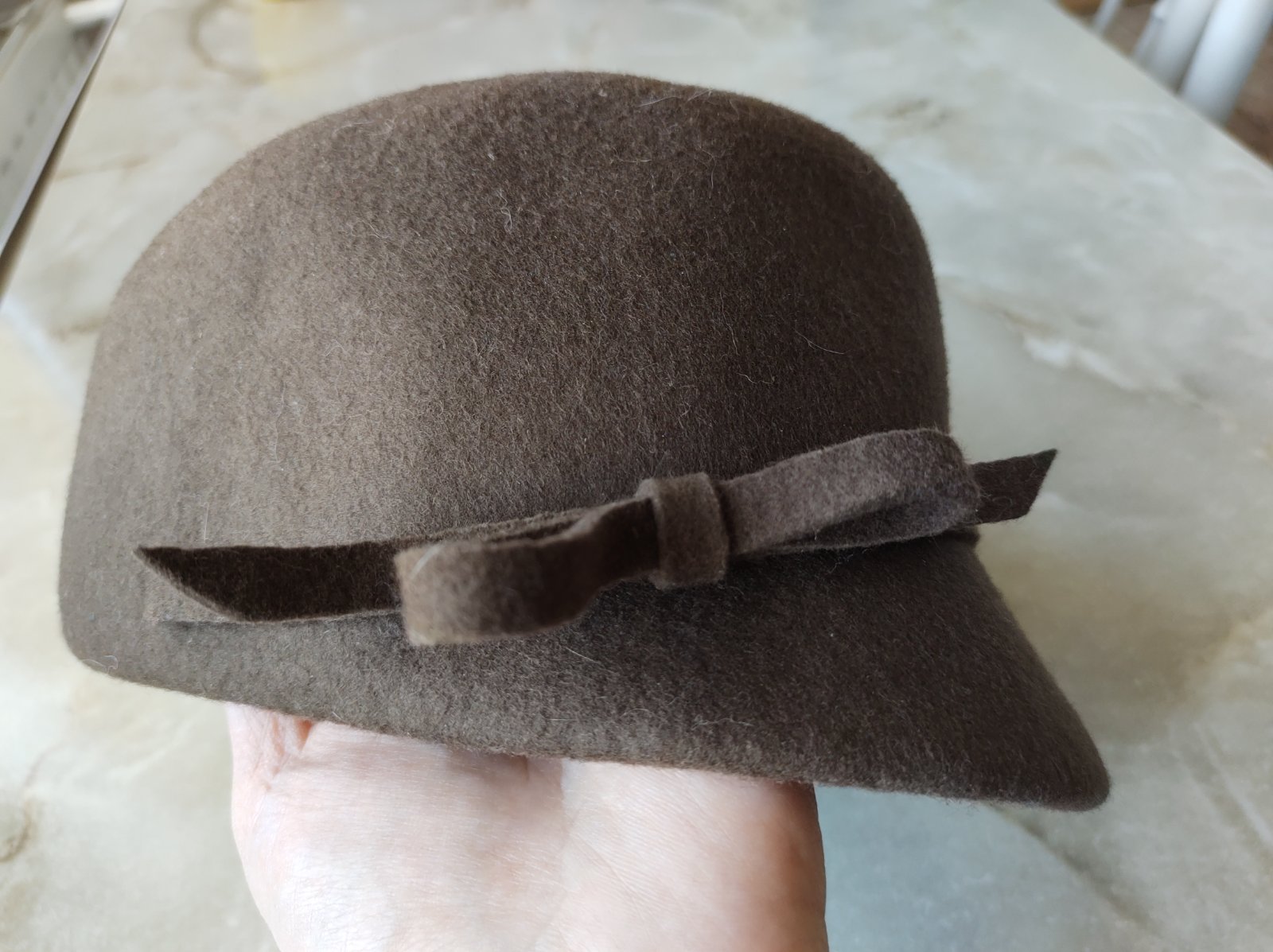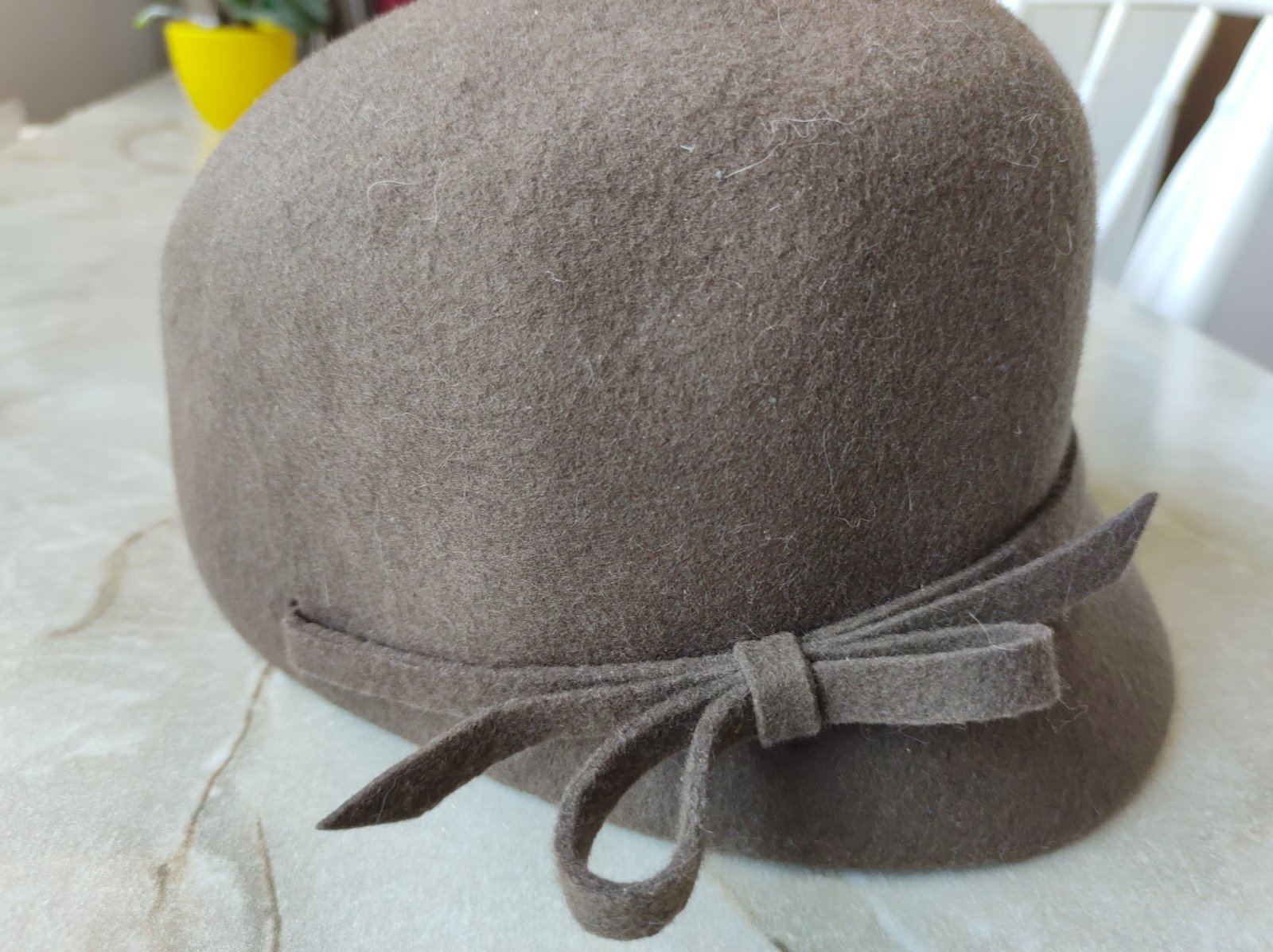 Dámsky klobúk, nosený , v 100%stave, vnútorný obvod 17cm, vonkajší obvod 25cm , výška 10cm. + poštovné