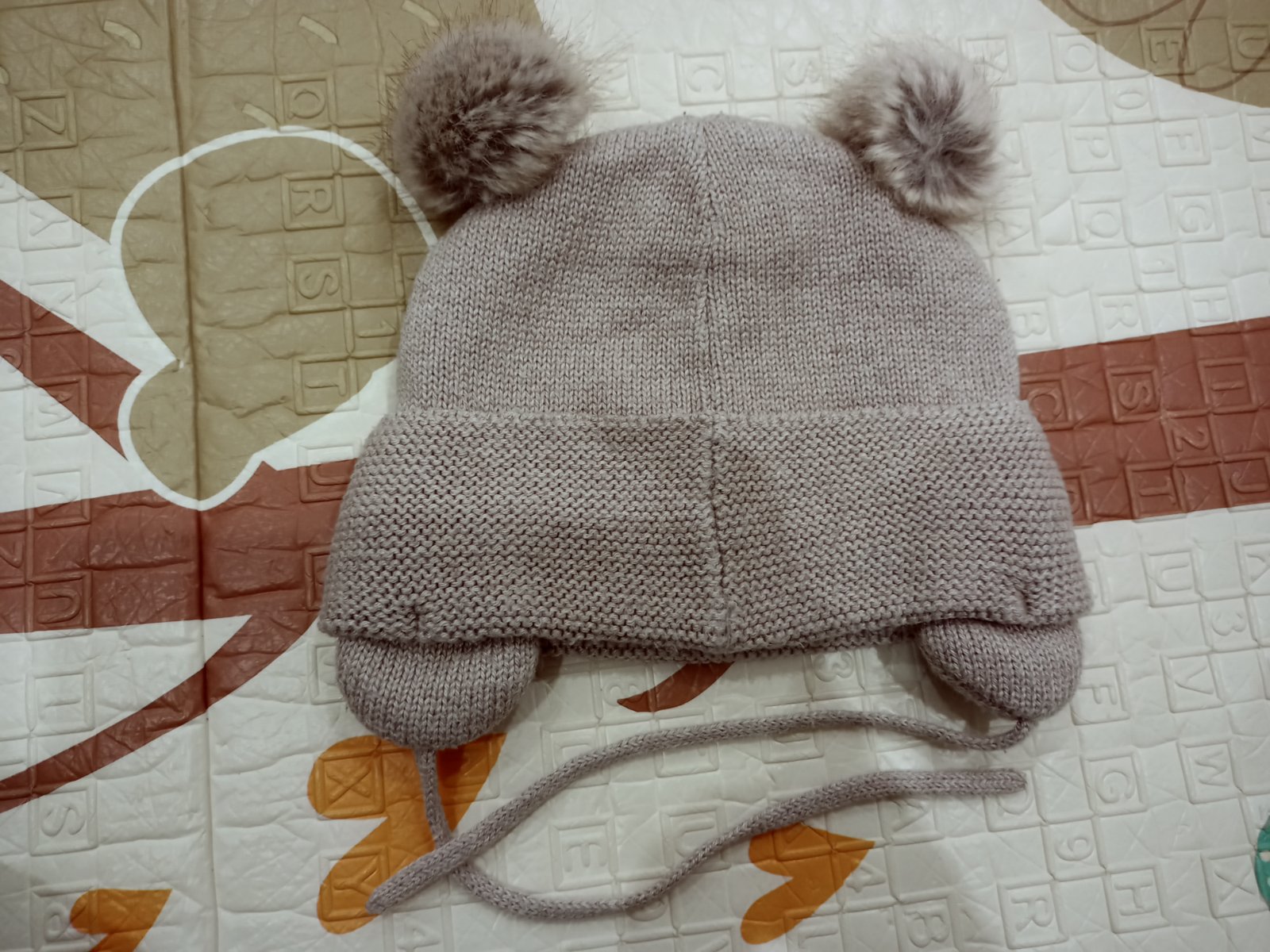Skvele sediaca pletená čiapočka s prekrytím uší (na viazanie). Podšitá flísovou vrstvou. Veľkosť 74/80.