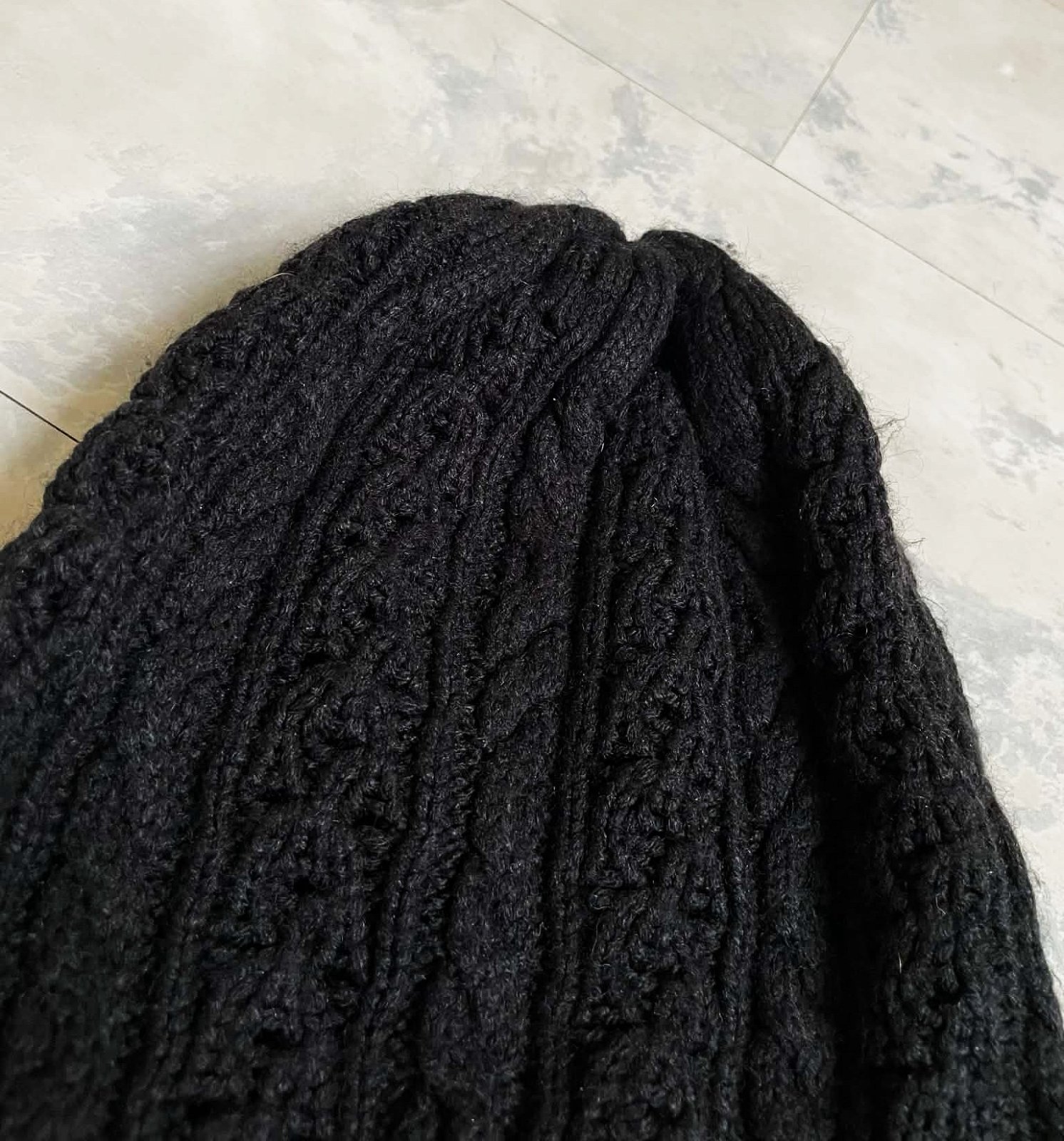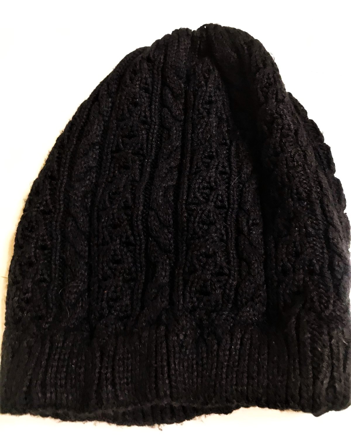 krásny vzor čiapky,neznosená,dlhšia,vzor ,ktorý vzadu prevísa,v rumbe hrubšia gumička,teplá,hrubší úplet